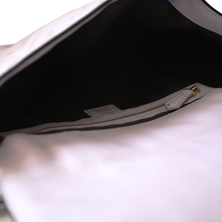 Expertly crafted from soft lilac Nappa leather, the iconic Fendi Napa Embossed Baguette showcases a three-dimensional FF motif for a touch of texture. The vintage gold-finish metal ware and FF clasp add a luxurious touch, while the magnetic clasp and internal compartment provide convenience. The bag comes with a handle, a detachable strap and a dust bag.