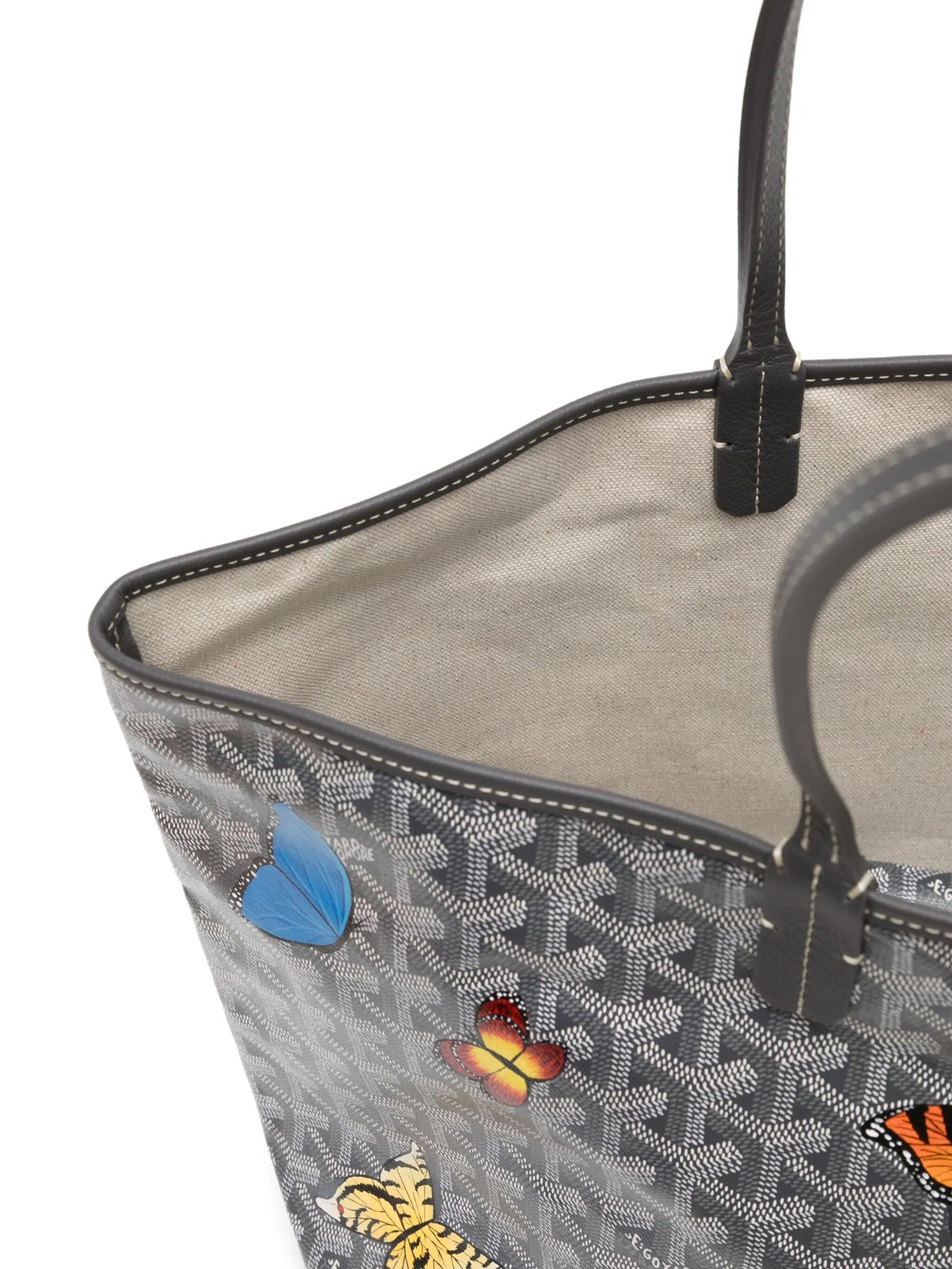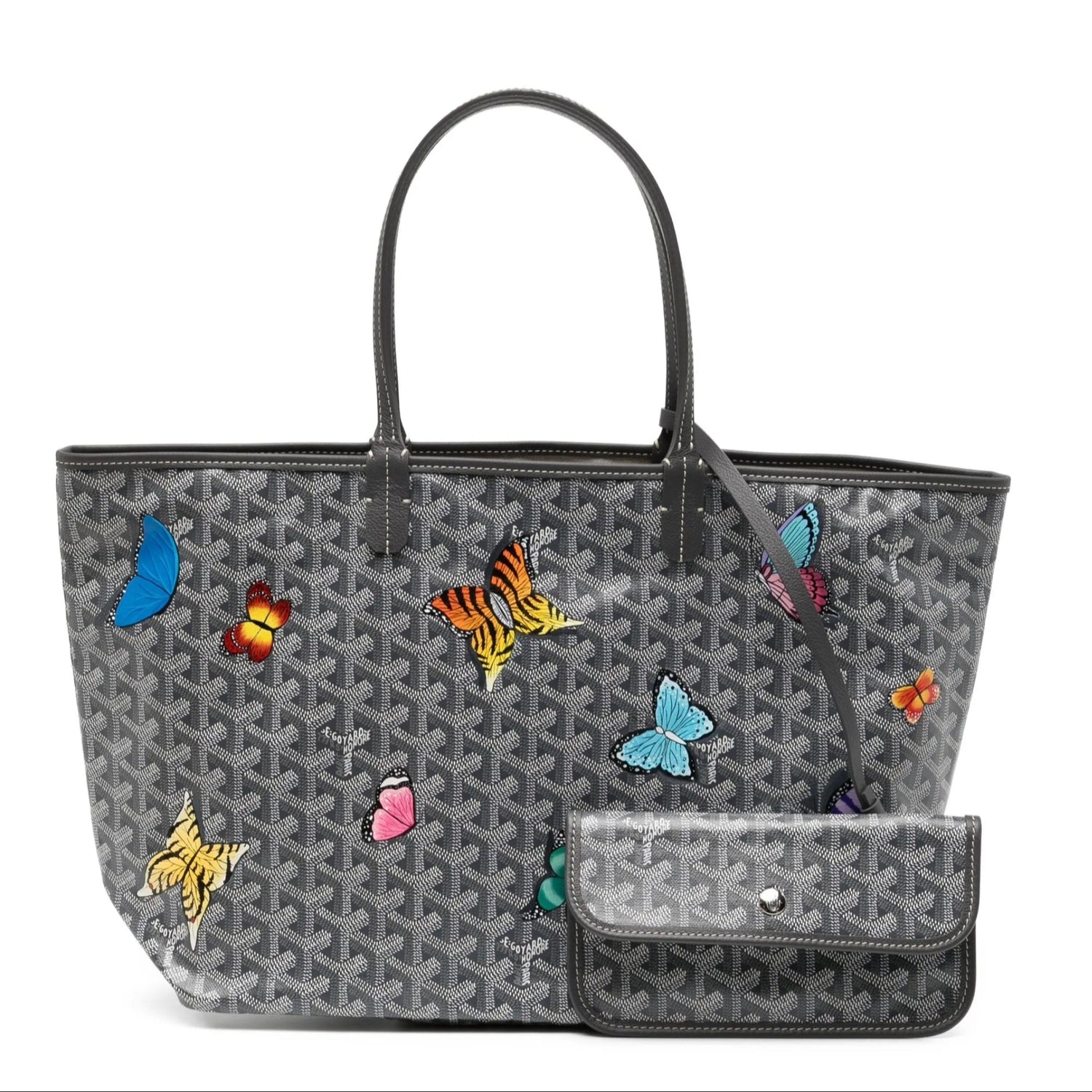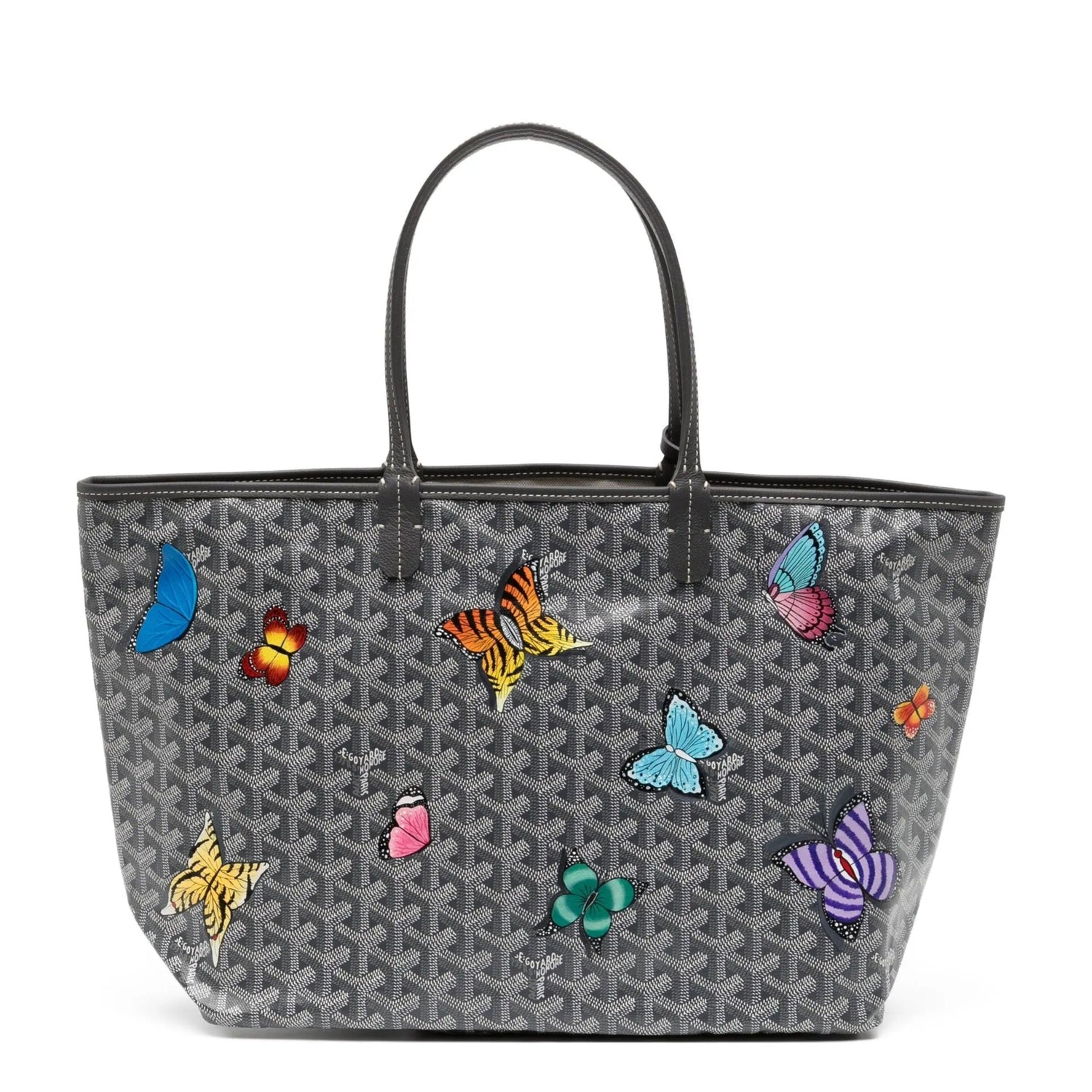 A handbag to truly set your heart aflutter, this customised Goyard St Louis tote bag derives from Rewind's Emotional Baggage collection. Its grey monogram leather is vitalised by a flurry of hand-painted butterflies, in a mix of refined luxury and spirited femininity. The Goyard St Louis handbag is distinctive for its open, shopper silhouette, with a spacious interior compartment and matching pouch.