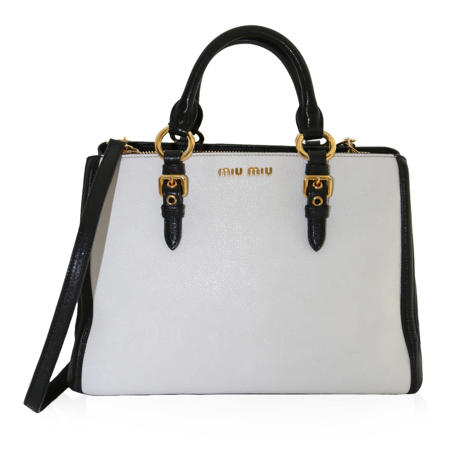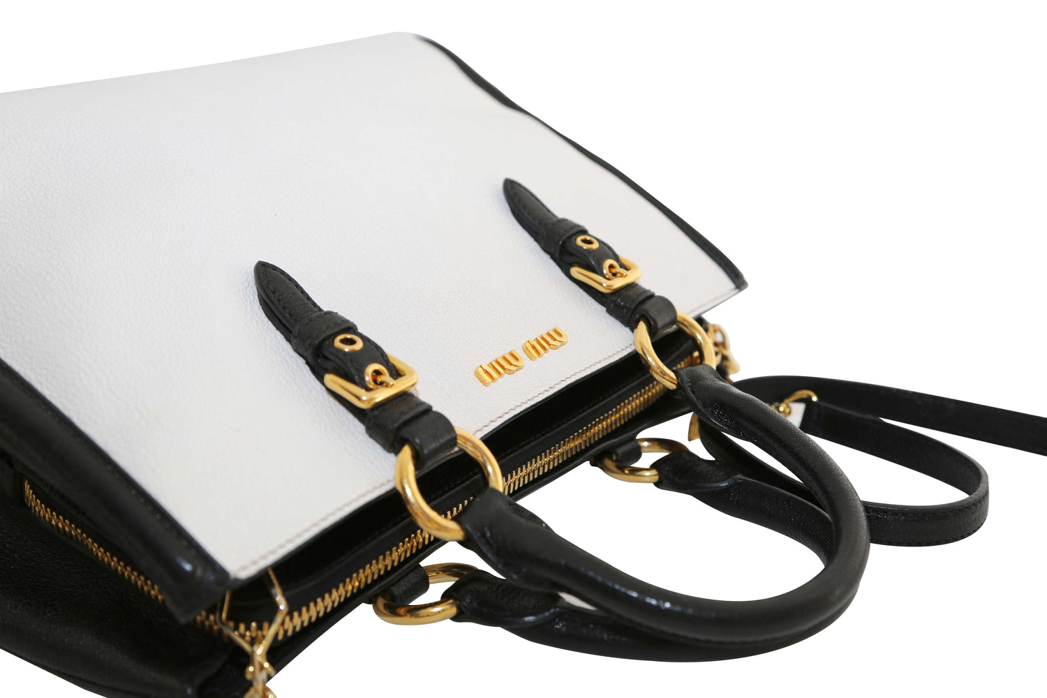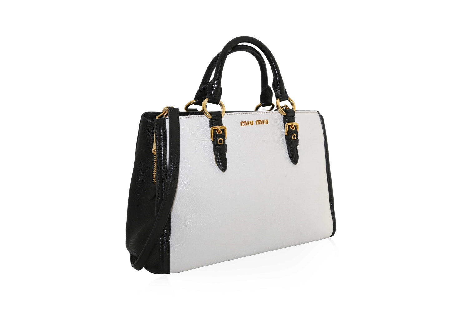Made in Italy and expertly crafted from goatskin leather, the Miu Miu Madras bag is a cult classic for a reason. Featuring gold hardware and three compartments, including an external zip pocket for easy access, it’s designed with practicality and style in mind. Perfect for both everyday use and special occasions, its black-and-white colour palette makes it a timeless staple. In excellent vintage condition, with no visible signs of wear, this bag is the perfect blend of elegance and functionality.