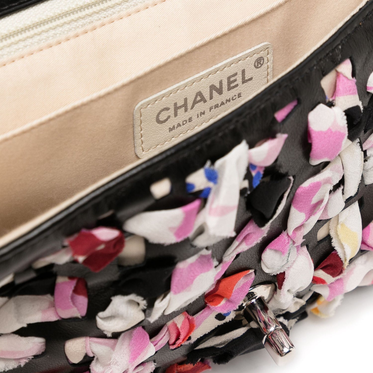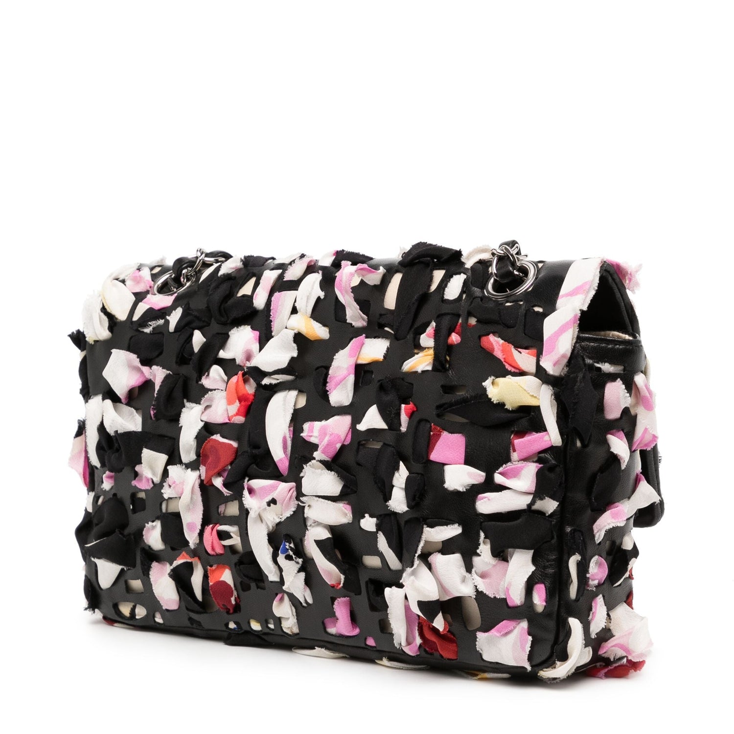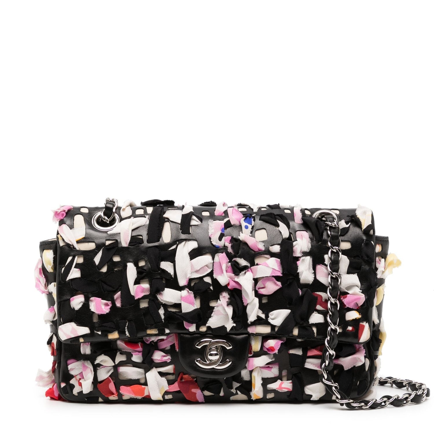 Elevate your style with the timeless elegance of the Silk Ribbon Classic Flap from Chanel. Crafted with luxurious silk ribbon in black and multi and leather, this iconic piece exudes sophistication and refinement. Elevate your wardrobe with this statement accessory.