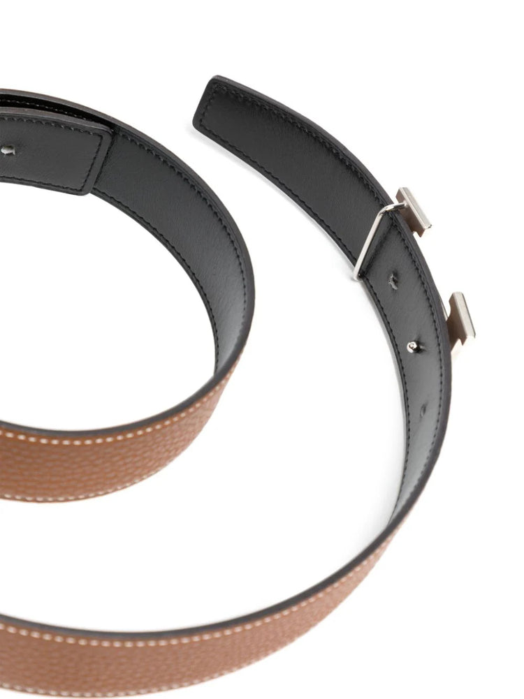 - Reversible brown grained leather and smooth black leather