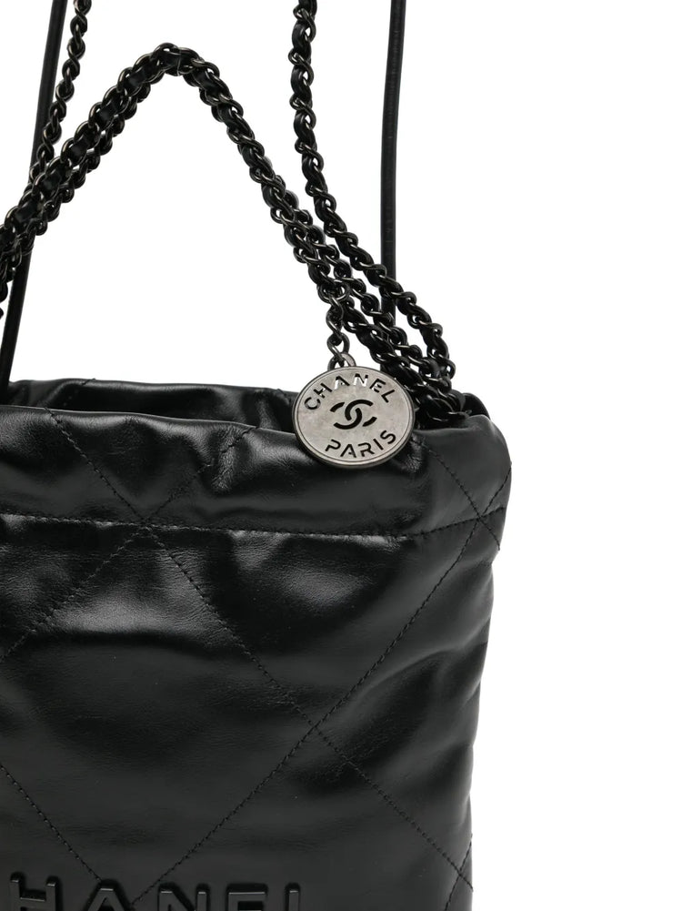 Shiny Calfskin Quilted Mini Chanel 22 So Black