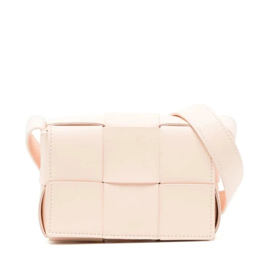 Expertly crafted from soft lambskin leather, the Mini Candy Cassette Crossbody Bag in beige from Bottega Veneta combines practicality and luxury. With its compact size and convenient cross-body style, this bag is perfect for on-the-go fashionistas. Elevate any outfit with this stylish and timeless piece.