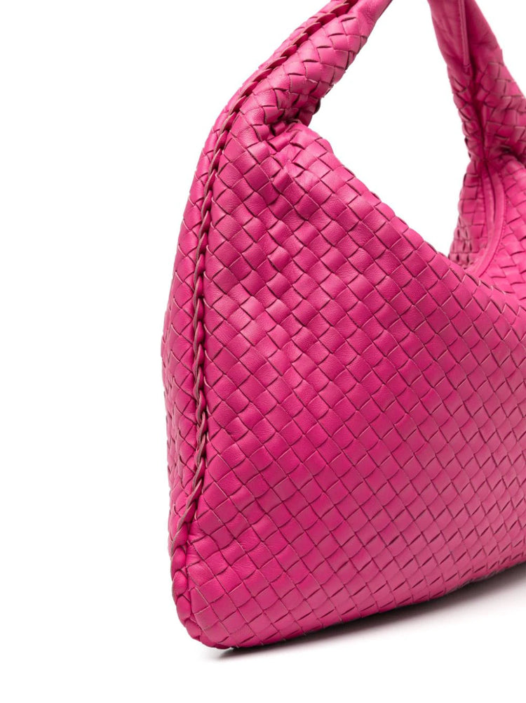 Crafted with expert precision, the Intrecciato Leather Pink Handbag from Bottega Veneta is a luxurious accessory for any occasion. Made from their signature intrecciato leather, this handbag boasts durability and sophistication.