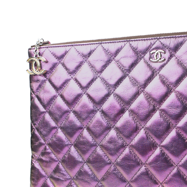 Iridescent Purple Quilted O-Case Large Clutch