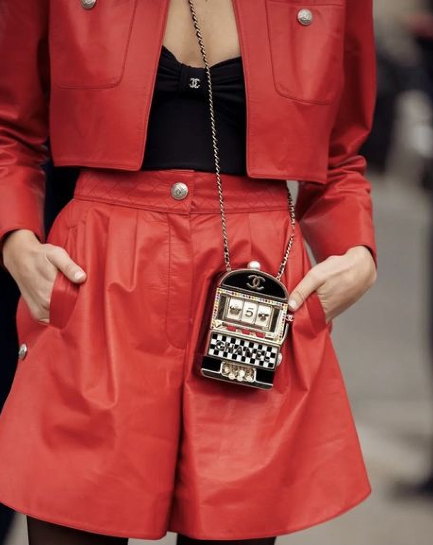 This Casino Minaudière Evening Clutch Bag by Chanel is a highly sought-after and exclusive piece from the 2023 Cruise collection.