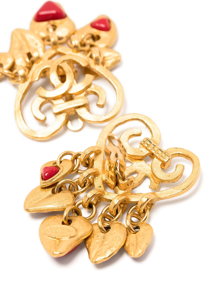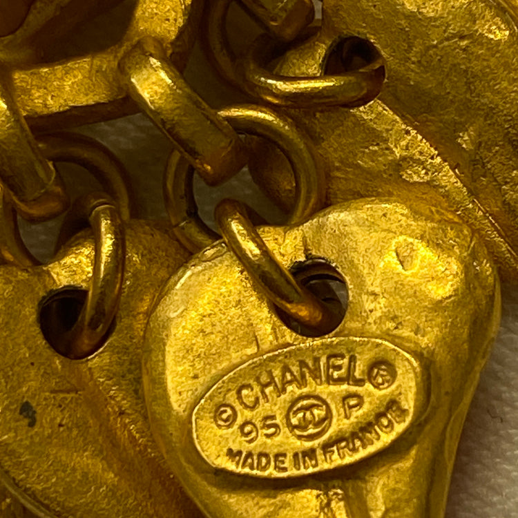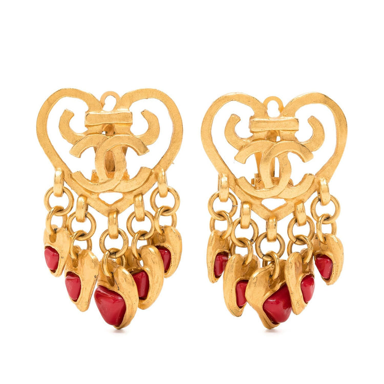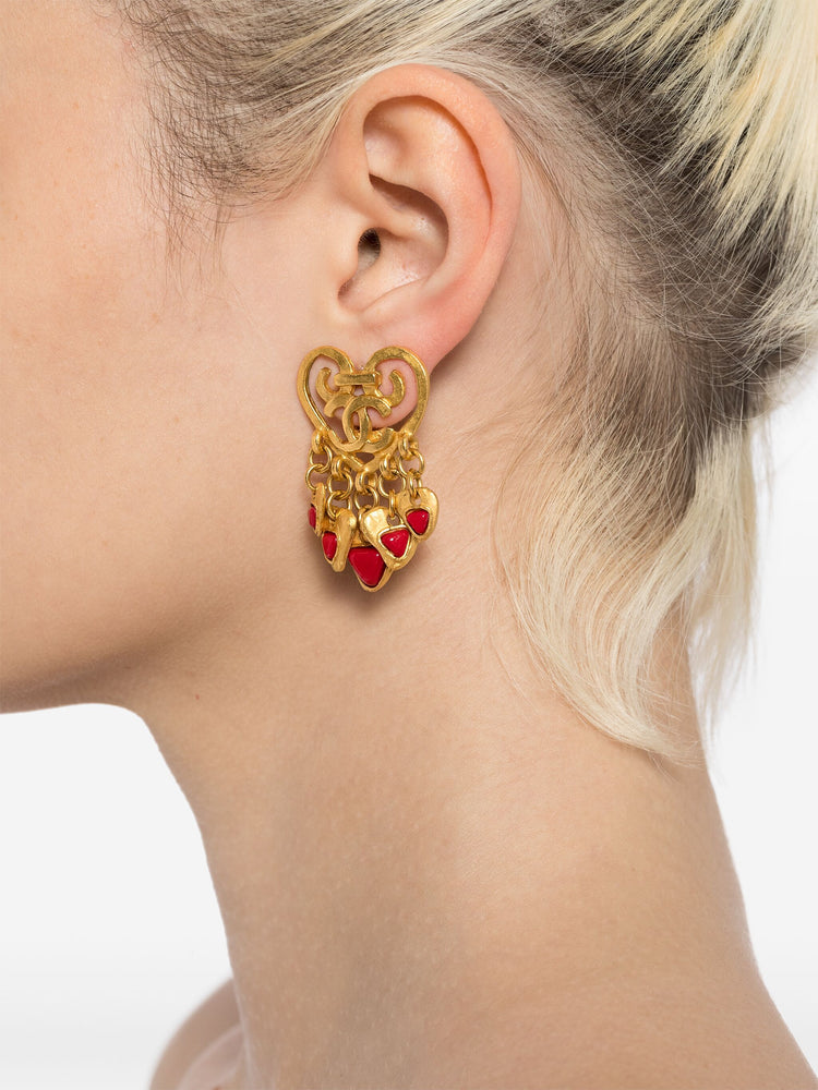 1995 CC Heart Fringe Dangle Clip-On Earrings