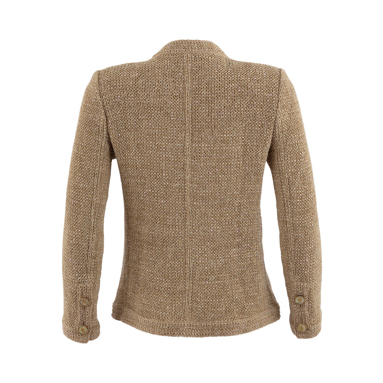 This classic Petite Vest Tweed Chanel Jacket is part of the Paris/Seoul 2016 Cruise Collection. It includes mother-of-pearl interlocking CC logo buttons. This popular spring/summer jacket is beloved by many Chanel collectors.