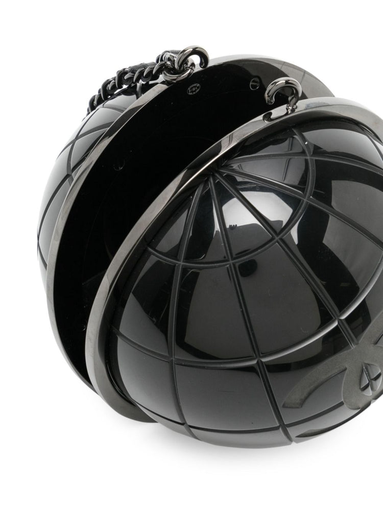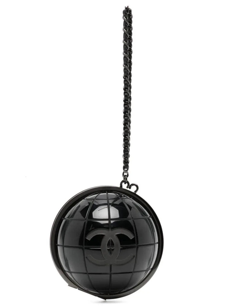 Karl Lagerfeld once described the iconic autumn/winter 2013 collection for Chanel as "up-to-earth" compared to other collections. This hard-to-find Chanel minaudière clutch perfectly reflects that sentiment. It features a sleek black plexiglass grid-embossed exterior, a black woven-chain wrist strap, tonal gunmetal hardware, and a matte black monogram. The clutch is spacious enough to hold basic essentials such as makeup and a cell phone.