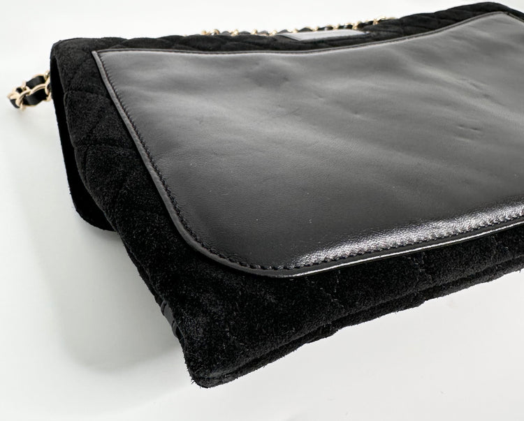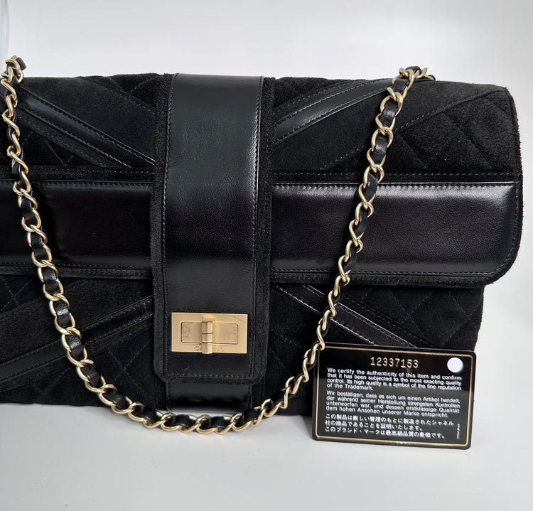 From the iconic Paris -Edinburgh collection and crafted in suede and lambskin leather, this limited edition Union Jack Chanel flap bag showcases the coveted Union Jack pattern. A beautiful gold hardware turn lock opens the bag to the main compartment and the woven chain leather strap can be worn as both a double and single strap. Representing a quirky take on the iconic bag, it is a perfect addition to elevate your outfits and carry your daily essentials.