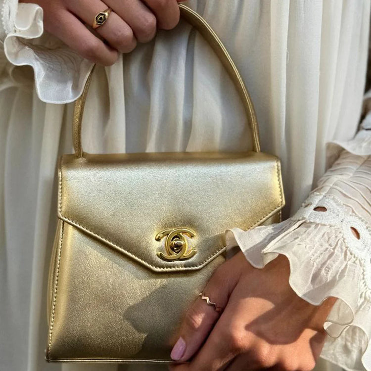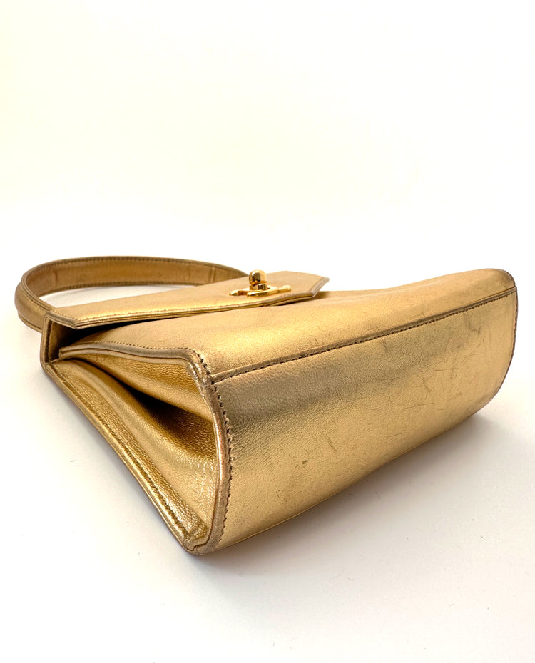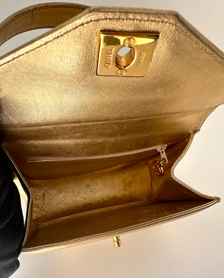 Introduced in the 1980s, the interlocking CC turn-lock fastening quickly became one of Chanel's main signatures. Crafted from gold-tone calf leather, this structured mini bag displays the iconic motif in polished gold-tone hardware.