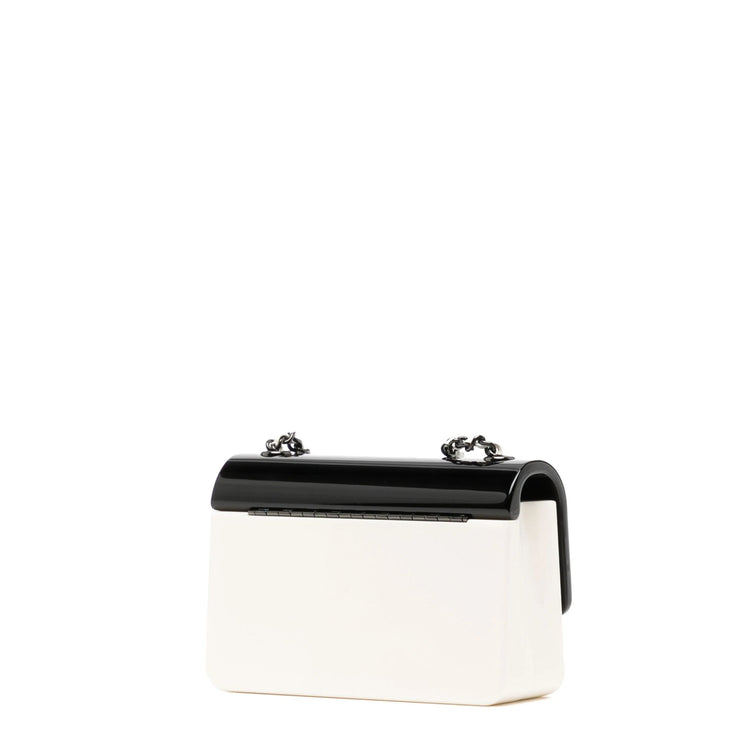 This white colour-block flap bag from Chanel is a hard-to-find piece that is sure to make a statement. Made from top-quality PVC material, this bag is both stylish and durable. Its clean white colour means it will match any outfit, making it a versatile addition to your wardrobe.