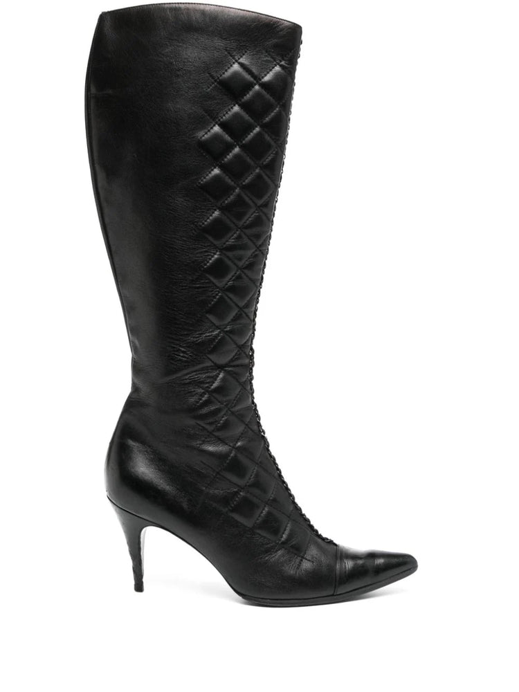 Diamond-quilted Chain Boots