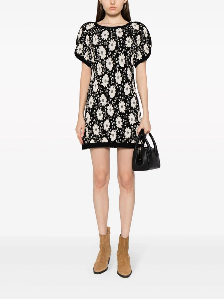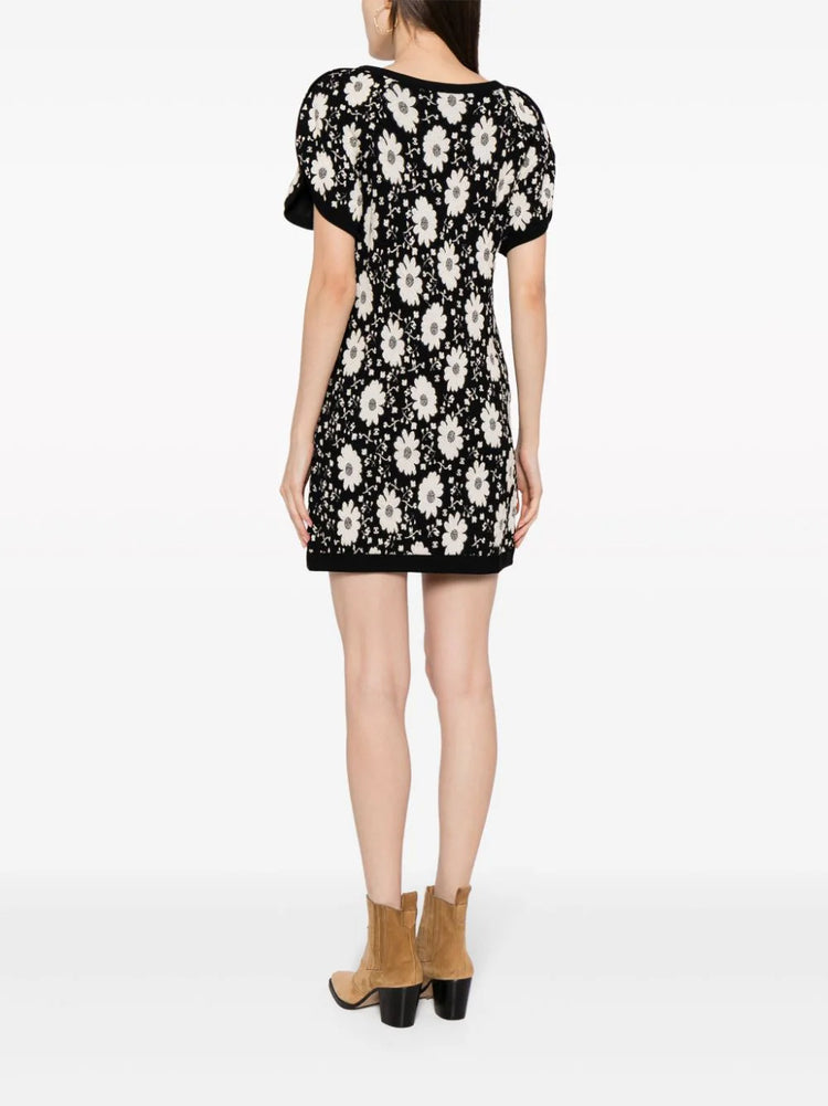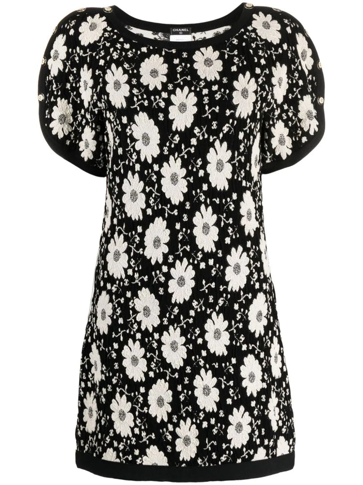 This elegant Chanel dress features a beautiful floral print and a knitted fabric construction for durability and comfort.