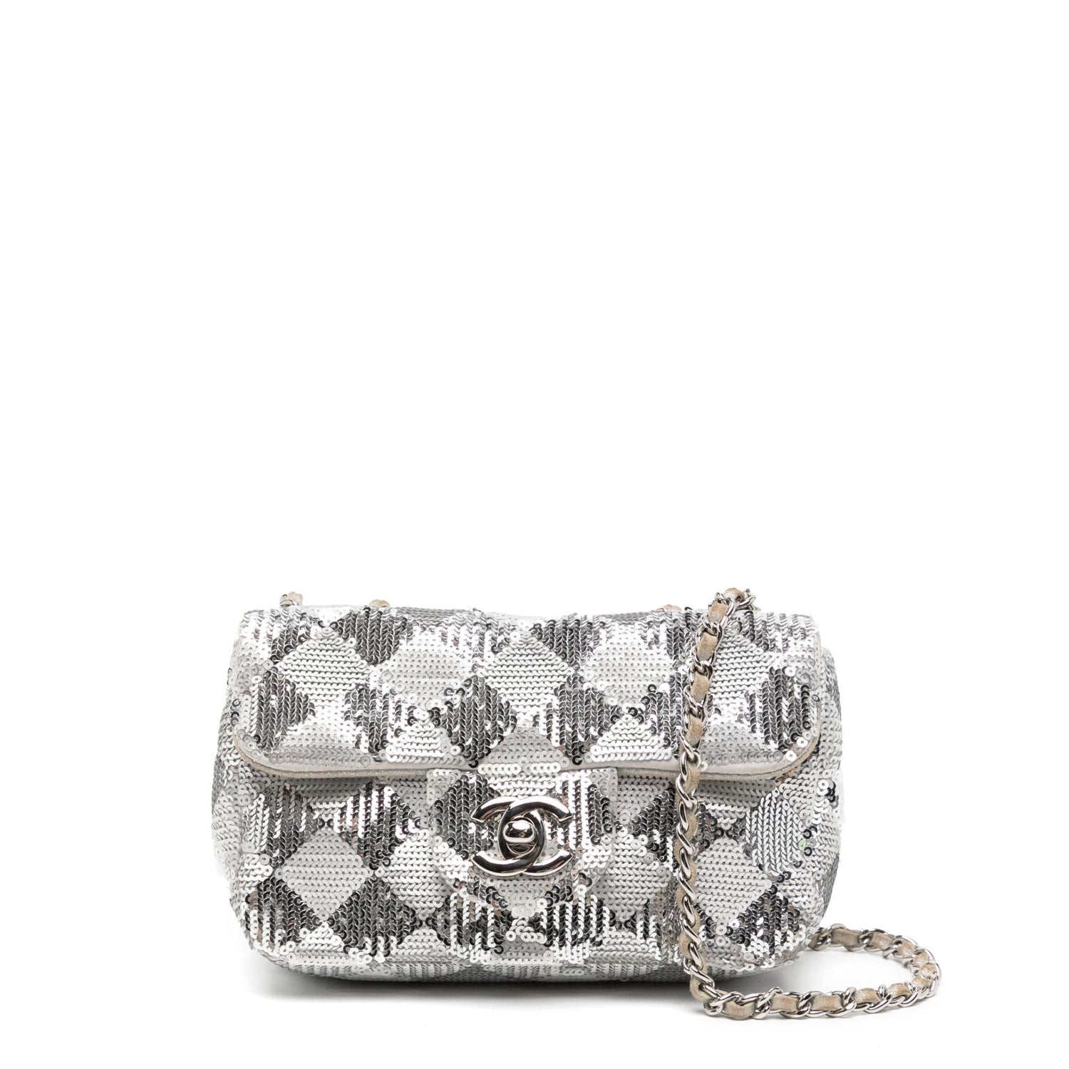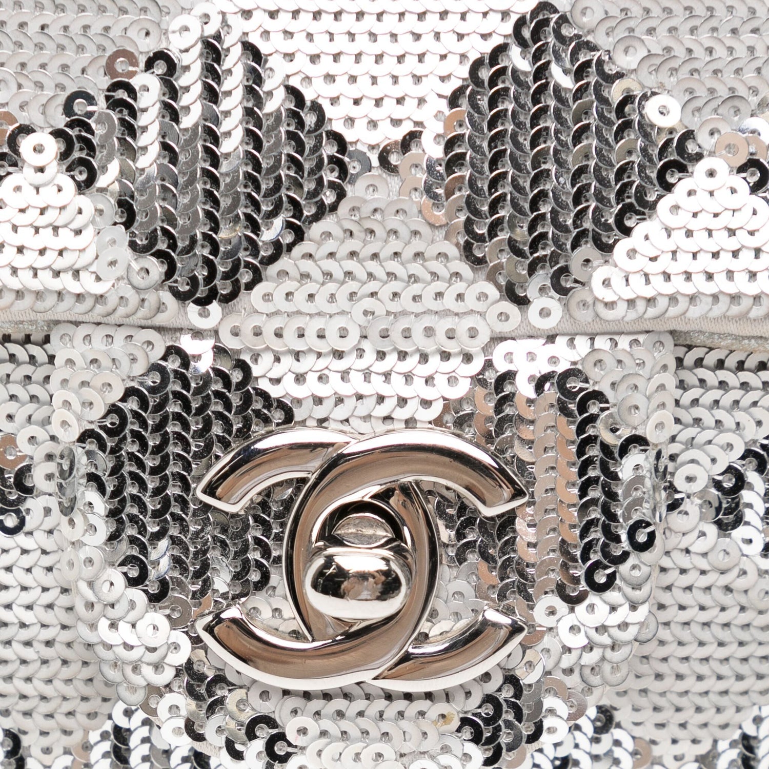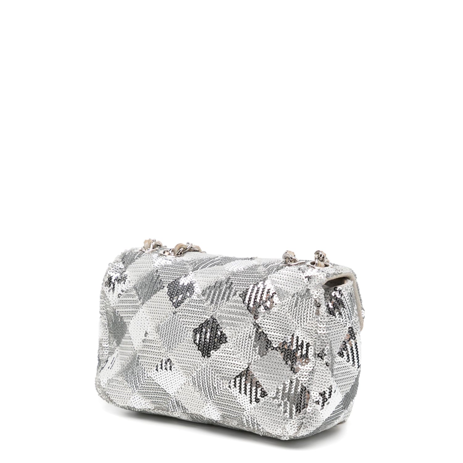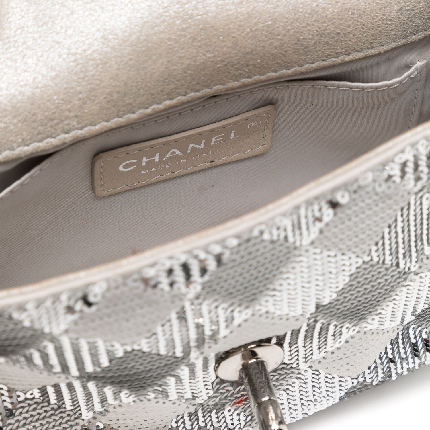 A must-have for any fashion expert, this Silver Sequin Mini Flap from Chanel is a truly remarkable and rare piece, designed in 2014.