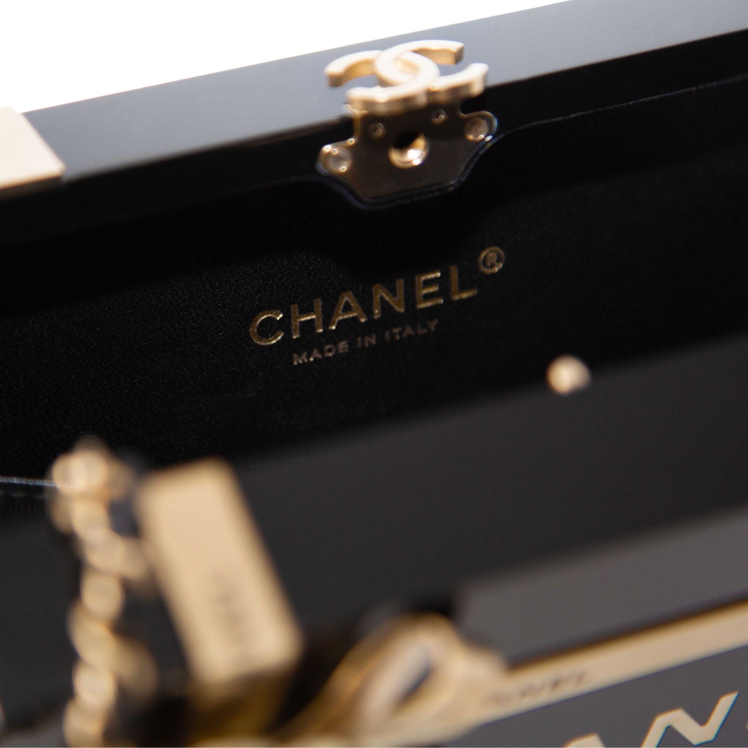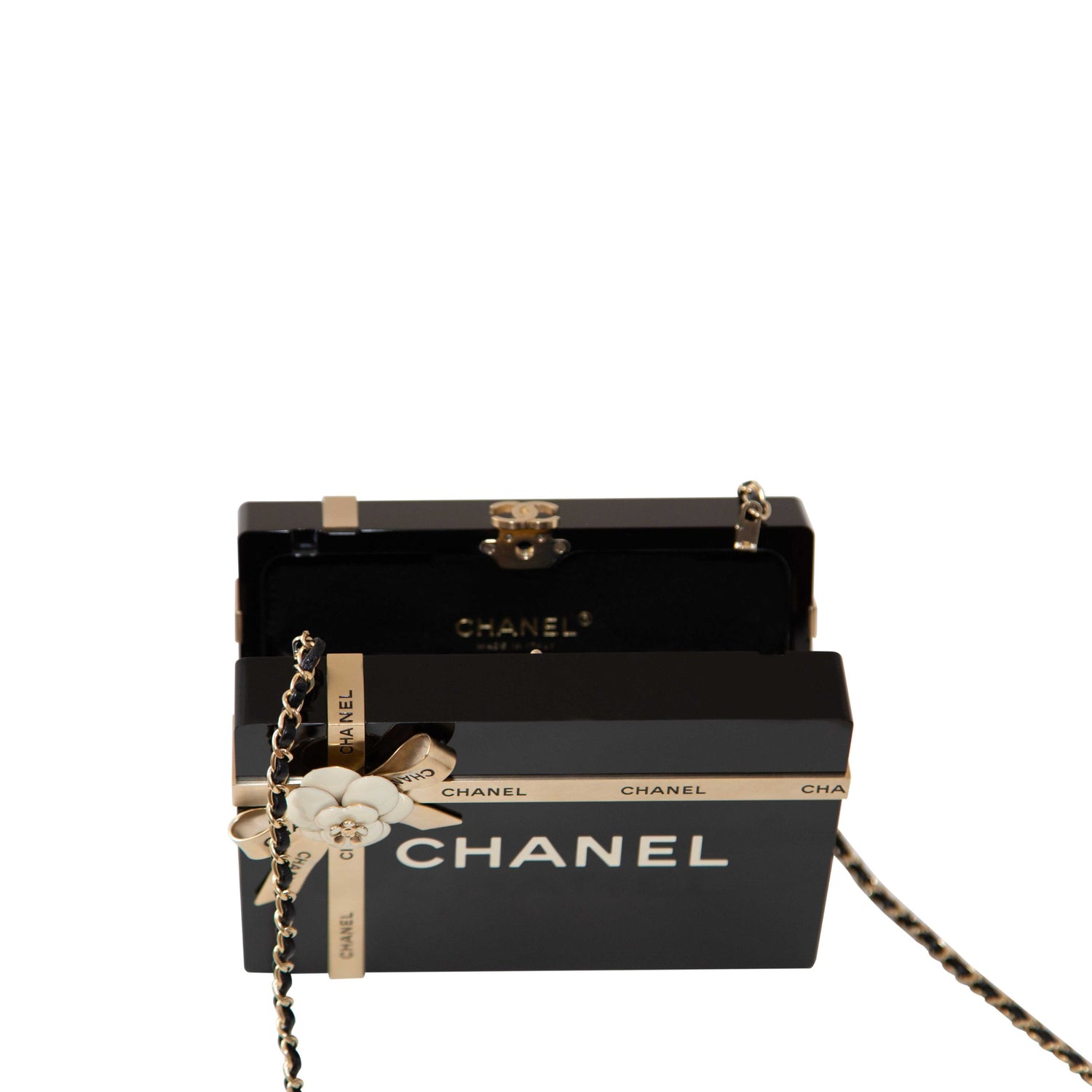 Chanel Black Plexiglass Gift Box Minaudière Gold Hardware, 2017.