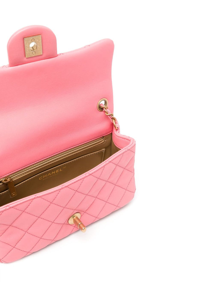 Gabrielle Chanel introduced diamond quilting to ensure the longevity and excellence of leather bags, which has now become a prominent feature of CHANEL's signature style. This small Classic Flap shoulder bag is a perfect example of this, with its leather and chain-link shoulder strap and iconic interlocking CC turn-lock.