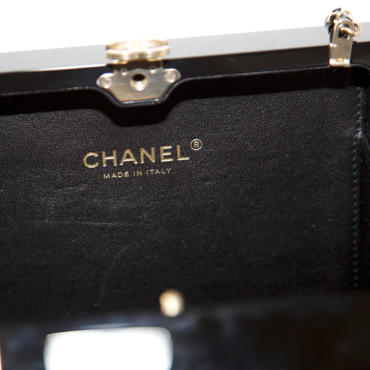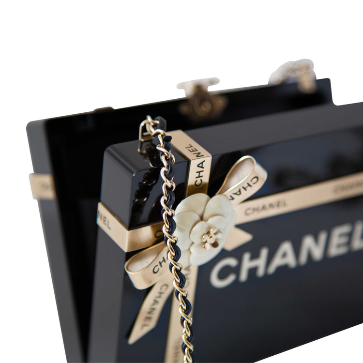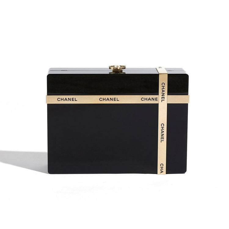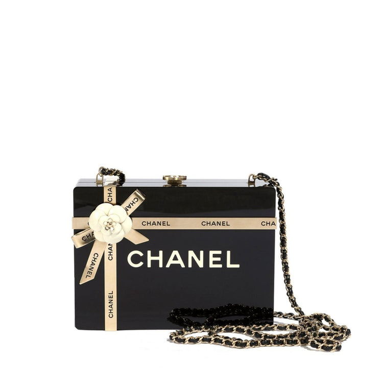 Chanel Black Plexiglass Gift Box Minaudière Gold Hardware, 2017.
