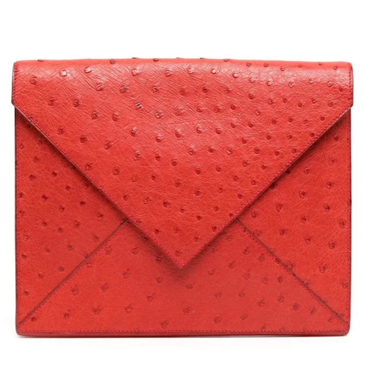 The Red Ostrich Liddy Clutch Bag is a timeless and elegant style with minimalistic sharp lines and Hermès’ keen preference for vibrant colours. Crafted from pebbled leather in a bright red hue, this rare and coveted clutch features a fold-over top with press-stud fastening. A must-have in any collector's wardrobe.
