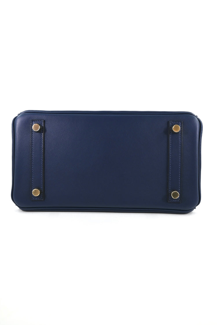 Indulge in the luxurious craftsmanship of this 25cm Bleu Navy Swift Birkin with GHW. Crafted from the finest bleu navy swift leather, this exquisite piece stands out with its refined aura and stunning gold hardware. Capturing the essence of timeless sophistication, this Birkin is the perfect addition to any discerning collection.