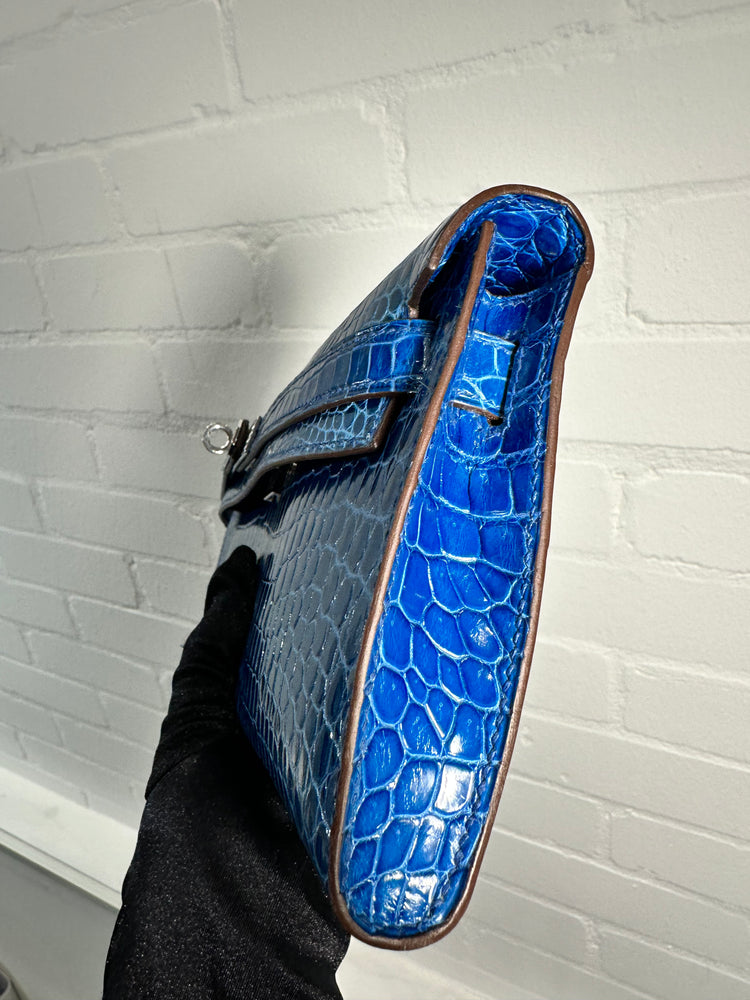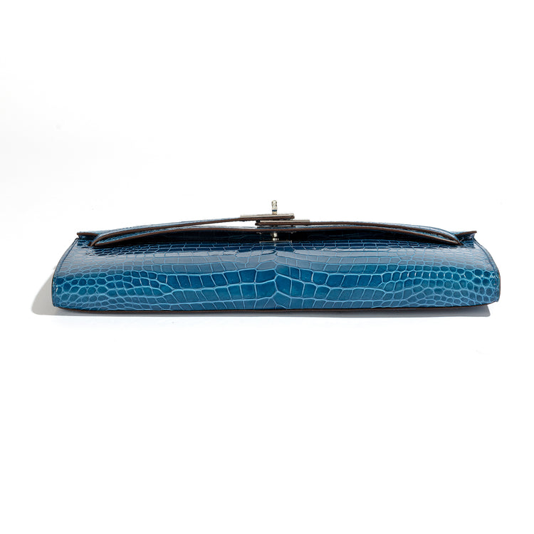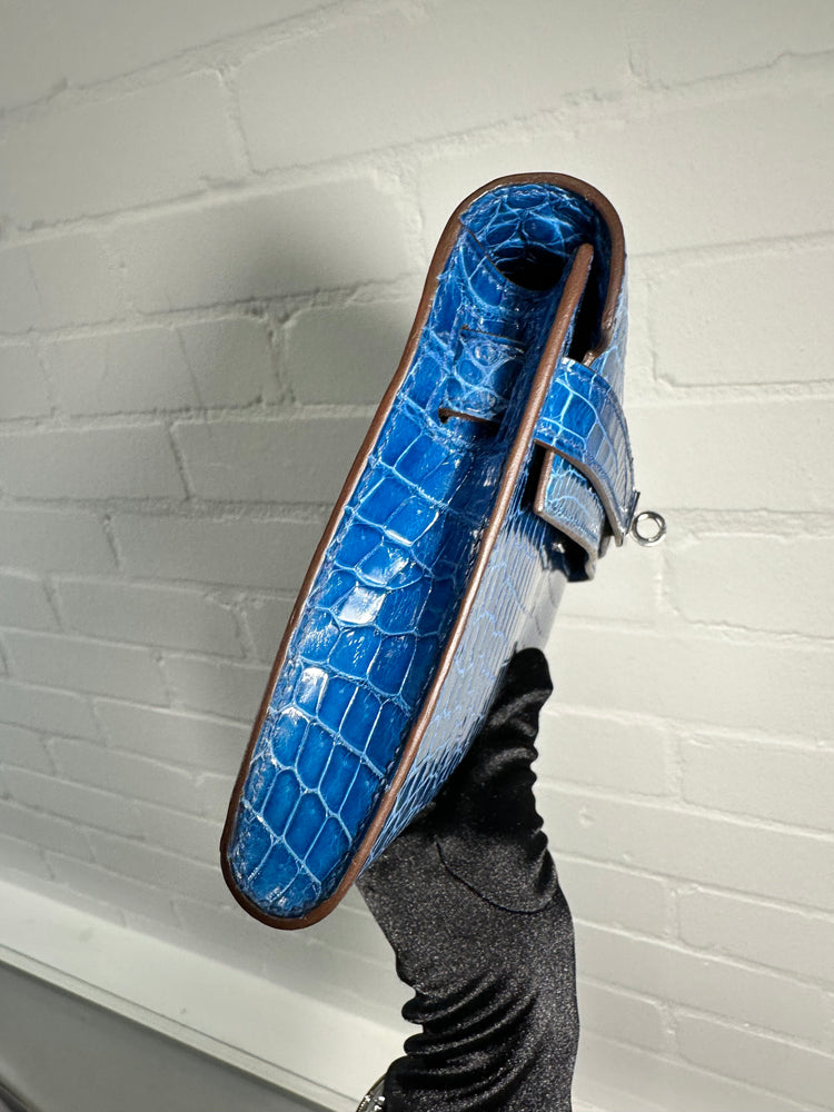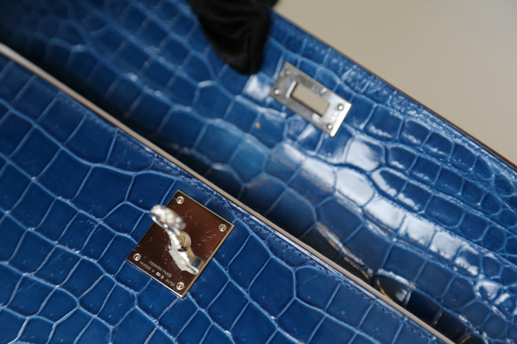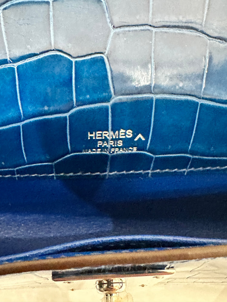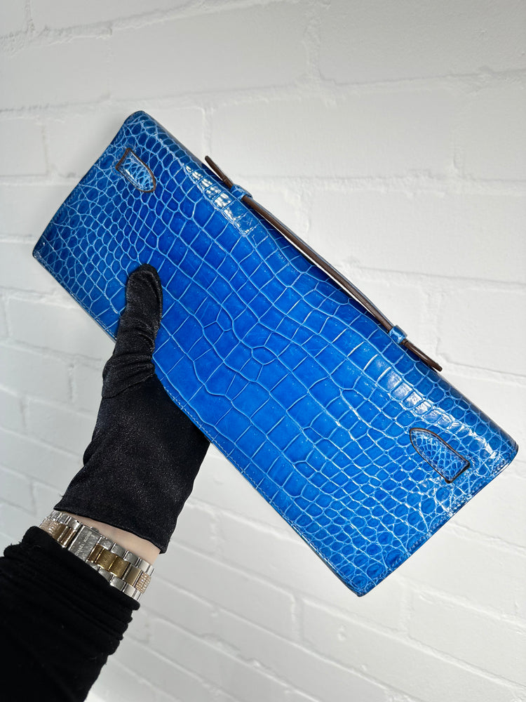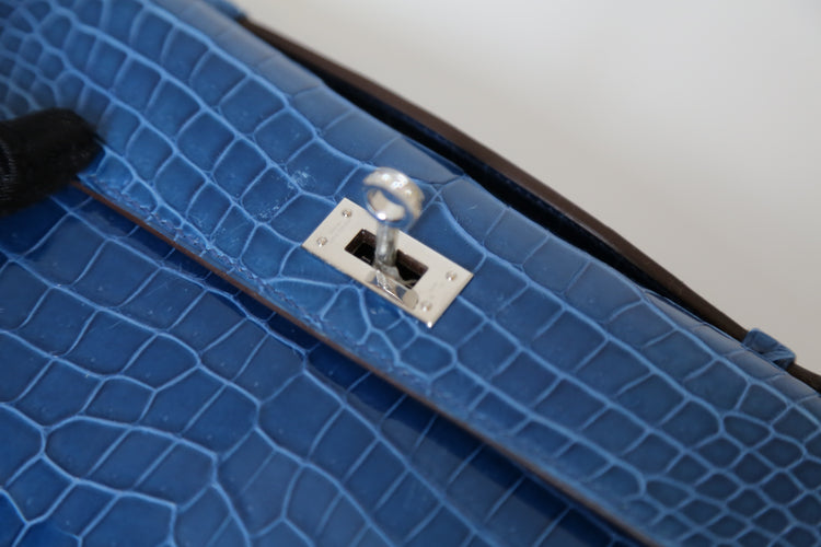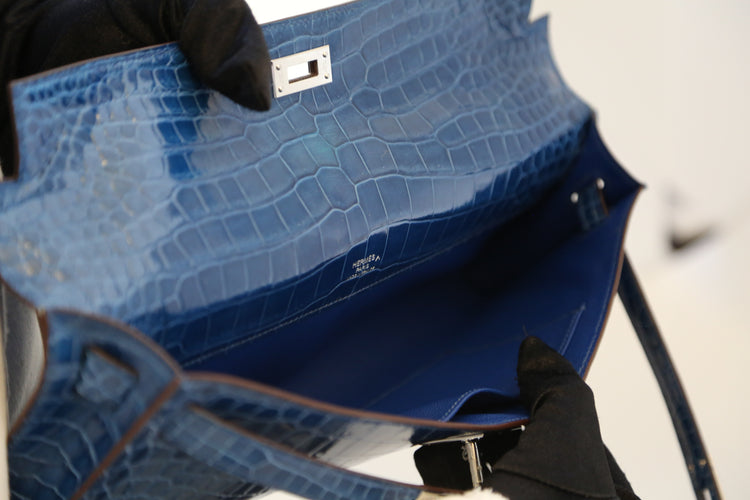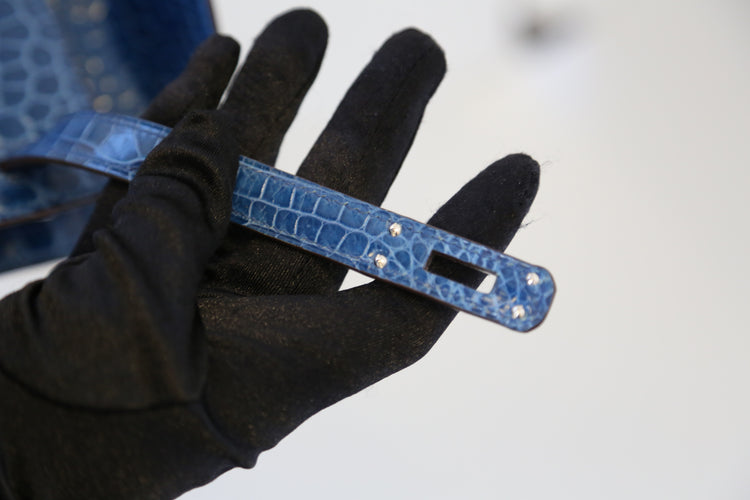 This Kelly Cut with diamonds is an extremely rare collector's item that exudes luxury. It is made from exquisite leather and features diamond-encrusted 18-karat white gold hardware. The diamonds are set into the cadena lock and turret, transforming this classic Kelly Cut into an extravagant statement piece. The bag is in good condition, exhibiting a few scratches on the front panel and a few hairlines in the hardware and on the back. Please refer to the images enclosed.