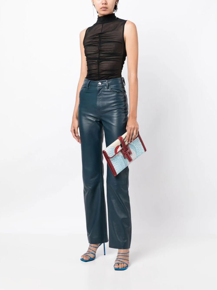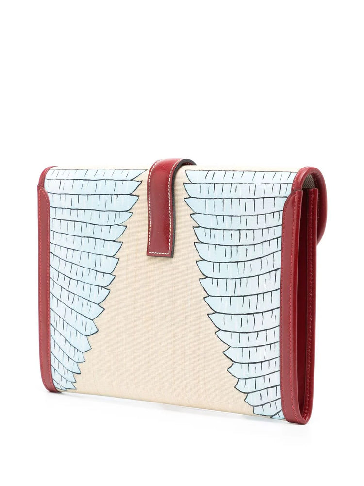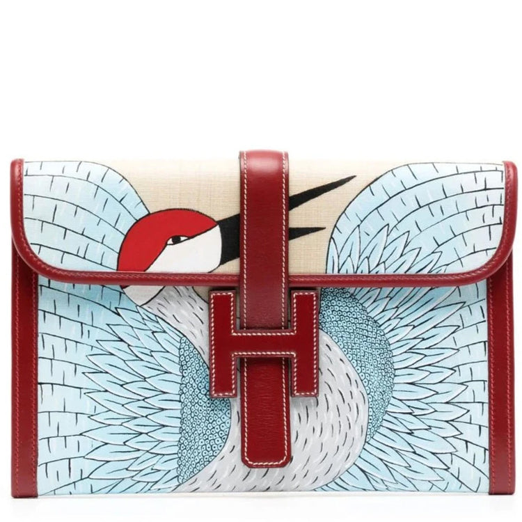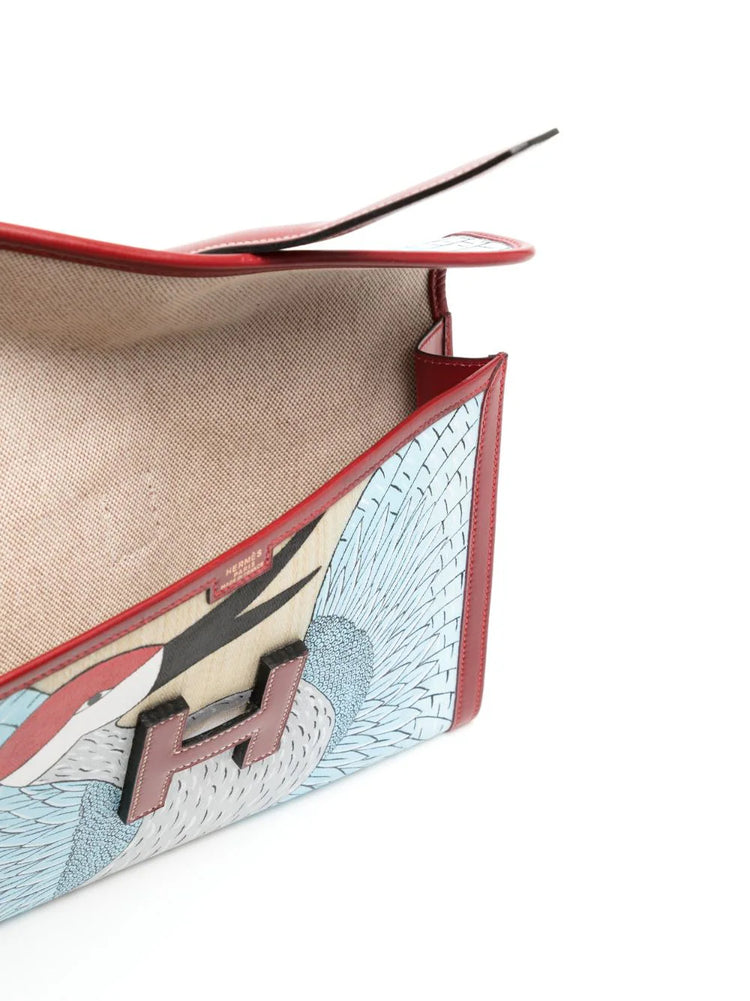 • Expertly crafted in France, the Hermès’ Jige Elan PM clutch designed in smooth burgundy calf leather, focuses on minimalism and efficiency.