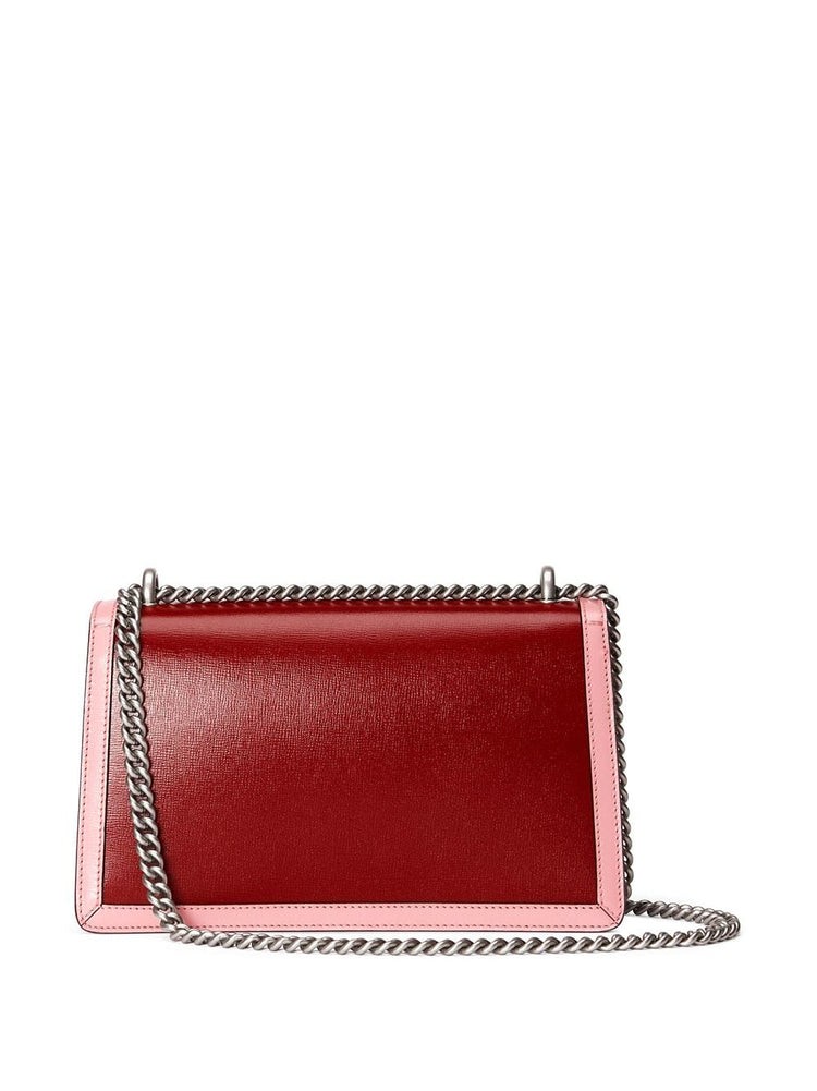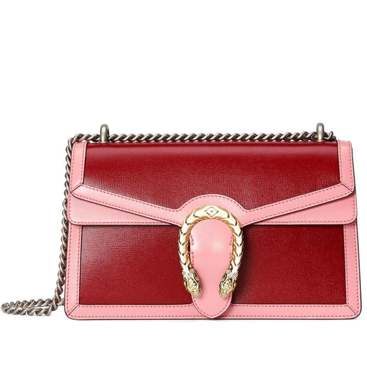 Expertly crafted in bi-colour leather, the Dionysus Small Bag features a unique textured tiger head spur closure, inspired by the Greek god Dionysus. Elevate your style with this bold and iconic piece.