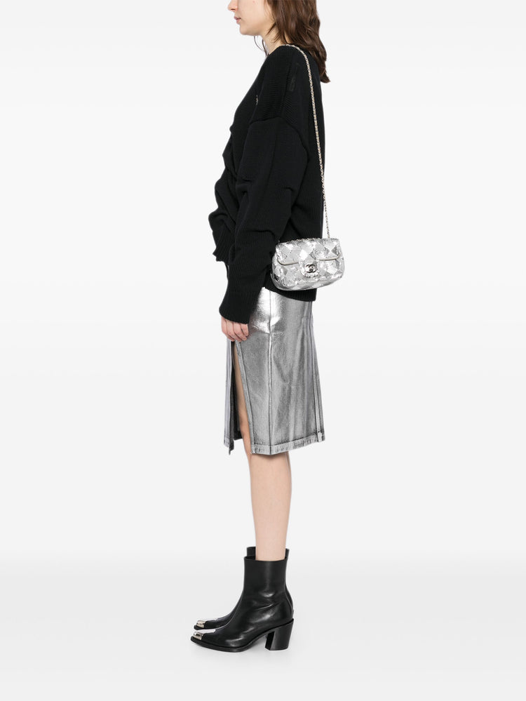 A must-have for any fashion expert, this Silver Sequin Mini Flap from Chanel is a truly remarkable and rare piece, designed in 2014.