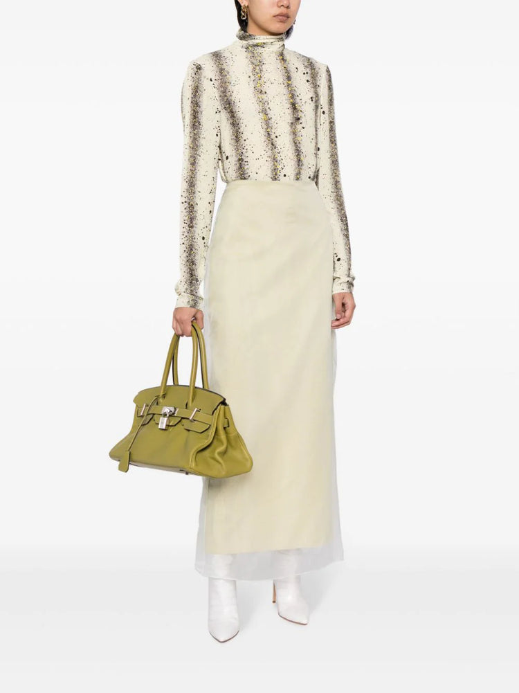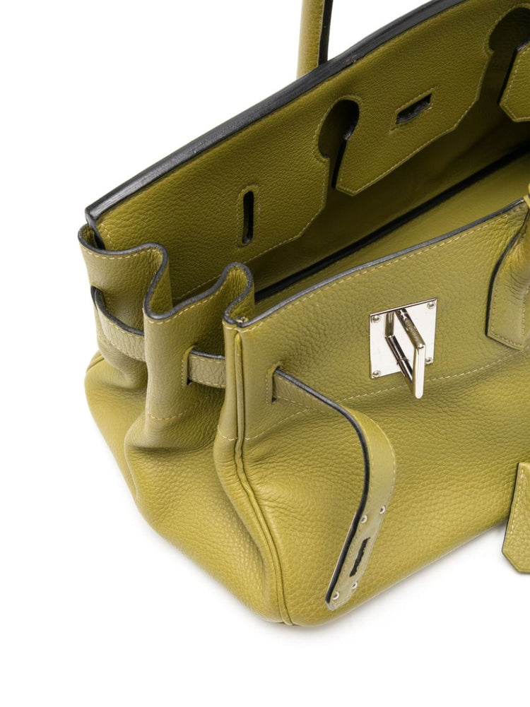 This 42cm Birkin bag designed by Jean Paul Gaultier is a truly unique piece. During JPG's tenure as the creative director at Hermès from 2003 to 2010, he reimagined some of the beloved Hermès classics, which have now become highly sought-after collector's items. This bag version features a spacious trapeze-shaped body and delicate metal feet for added structure and is crafted from high-quality leather in a beautiful shade of green.