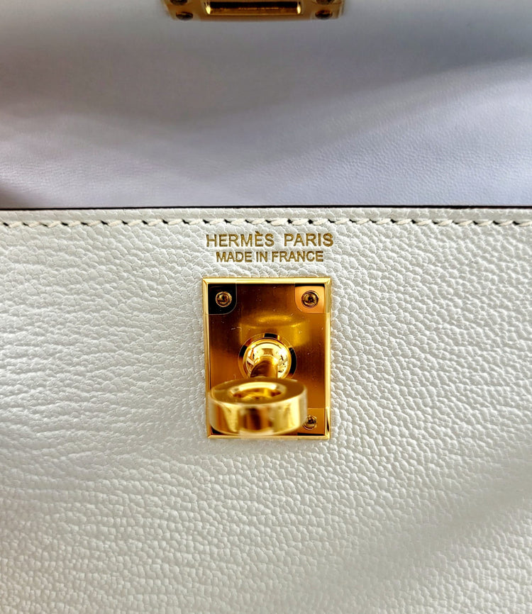This is a beautiful example of a mini Kelly 20 with golden hardware. In the luxurious & popular Chevre leather, this is a leather that is lightweight, durable and easily cared for. This gorgeous mini bag also comes with a detachable shoulder strap and dustbag.