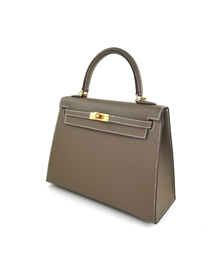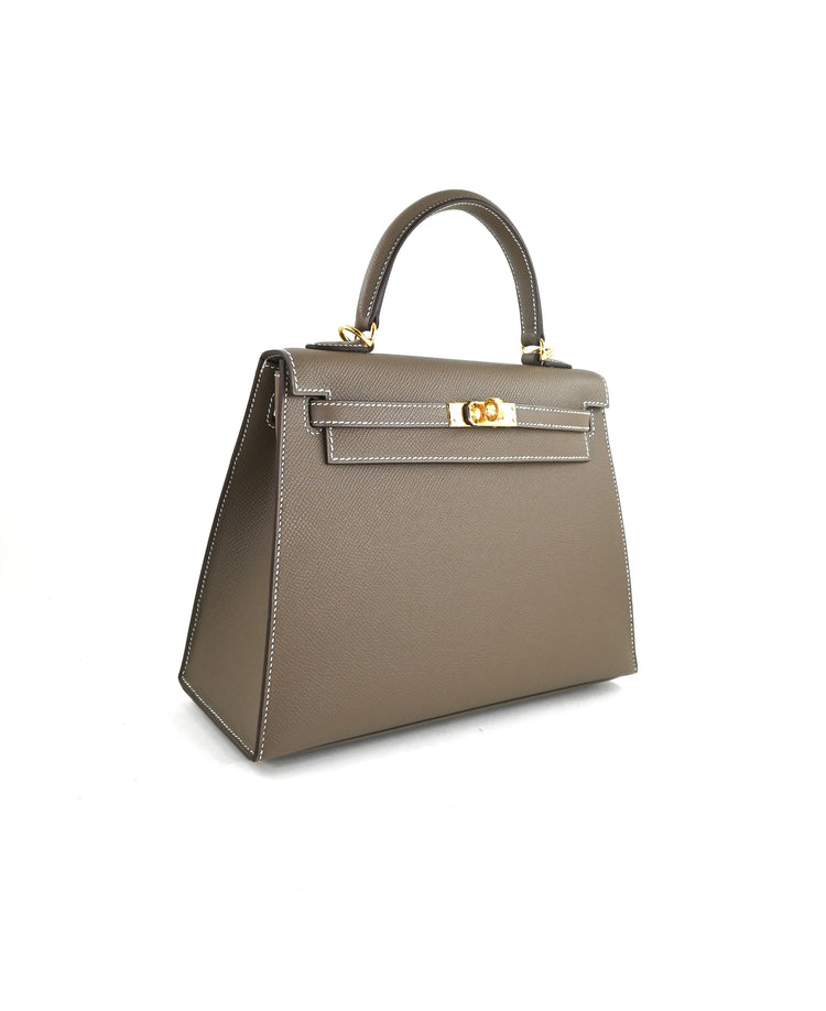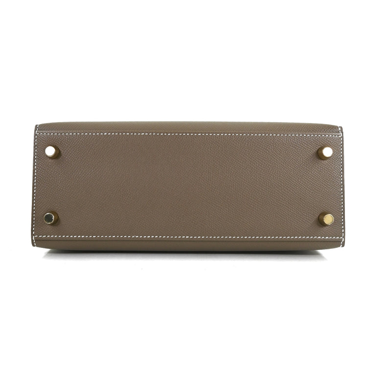 A true testament to the quality of the house's craftsmanship, this Hermès Kelly 25 exudes timeless style and elegance. Crafted from Etoupe Epsom Leather and finished with gold-tone hardware, this bag features the classic twist-lock fastening and the signature Kelly bag strap. Compact-sized, the handbag's spacious interior includes a zipped pocket and an open sleeve, making it as practical as elegant. The 25cm-wide edition of the Kelly is extremely sought after and highly collectable.