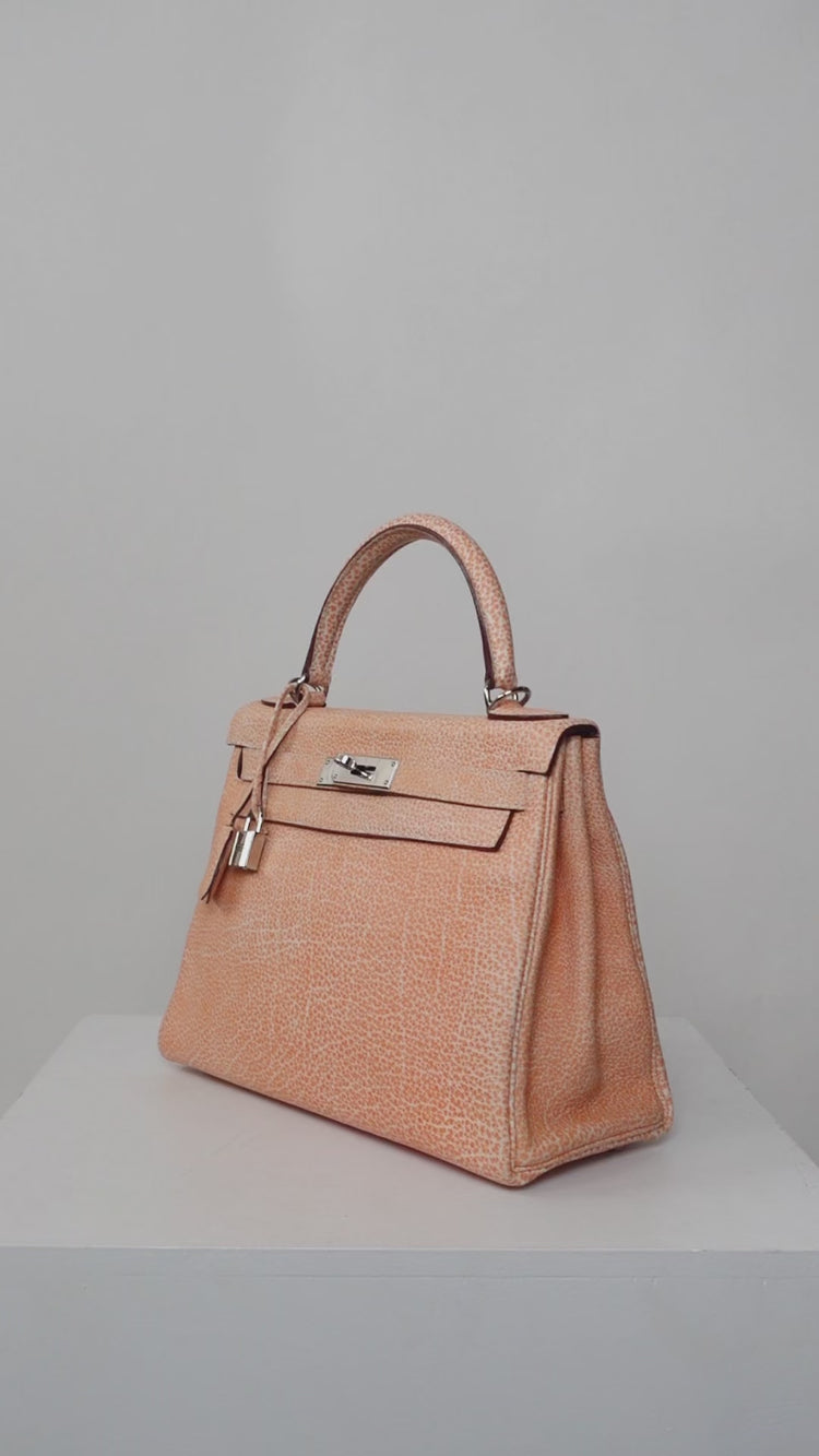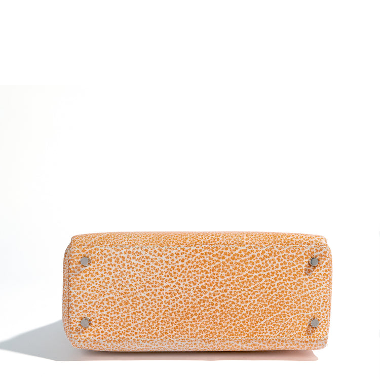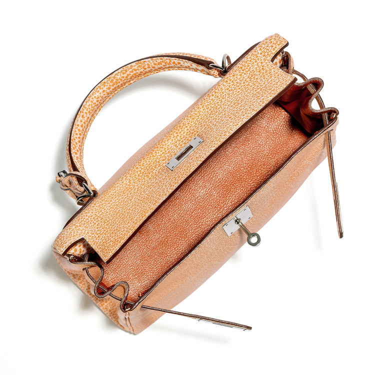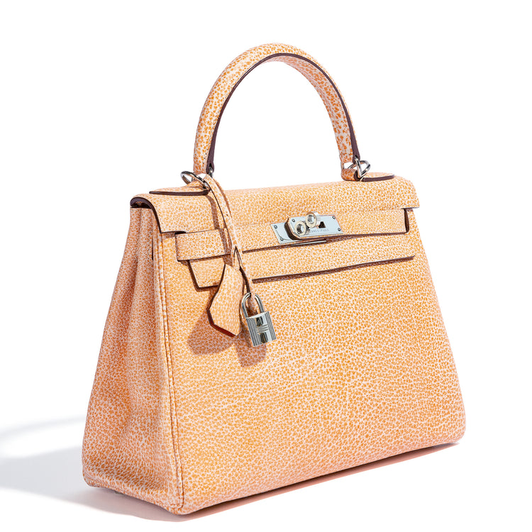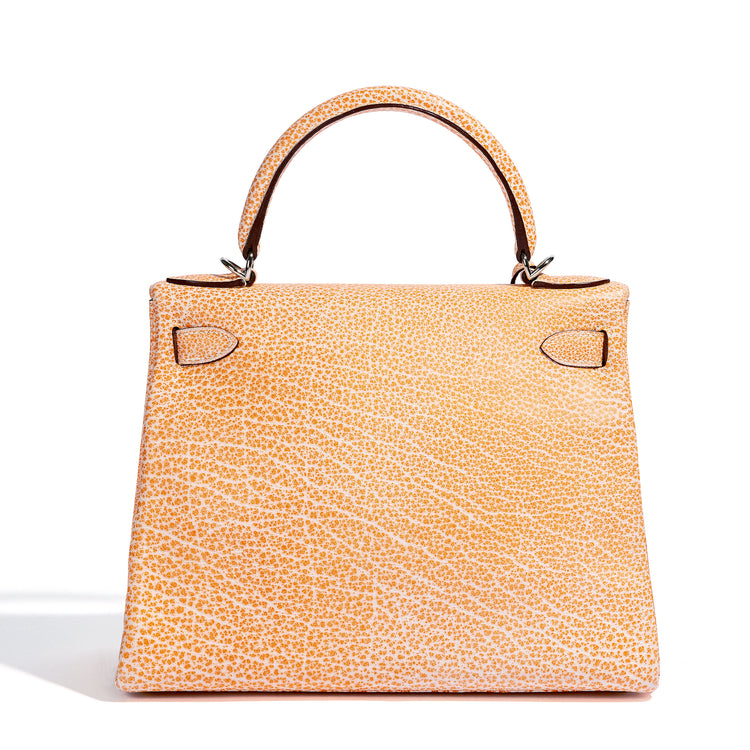 This Limited Edition Kelly, Sellier design, is made of Orange Dalmatian buffalo leather and features palladium hardware. The Dalmatian is a highly sought-after Limited Edition from Hermes that is often admired but rarely spotted.
