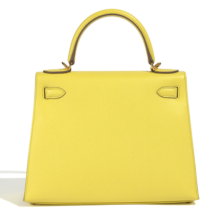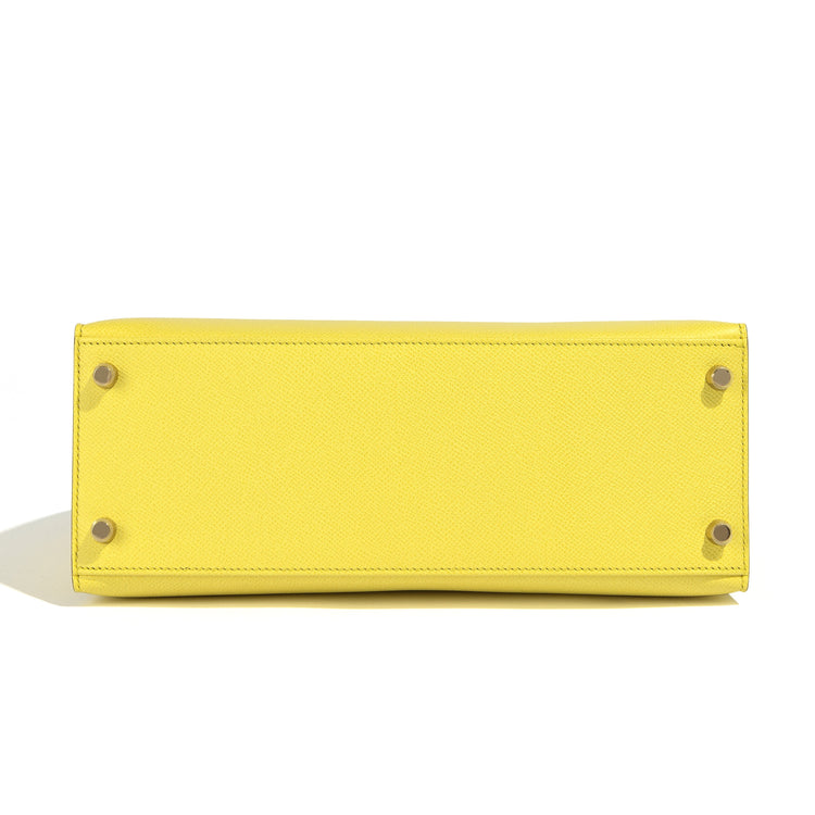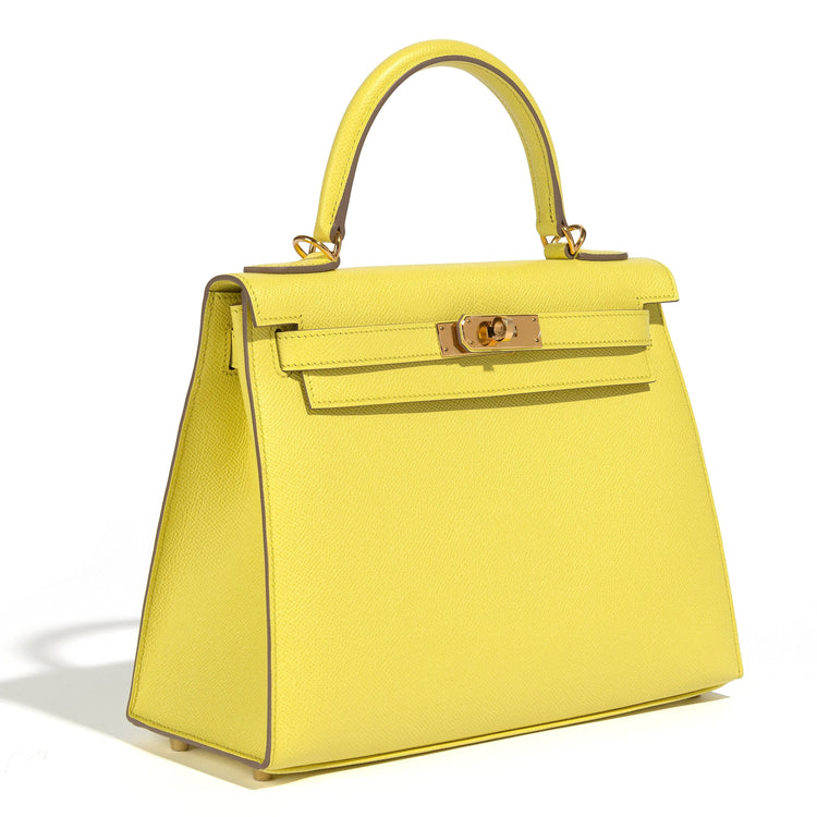 The Kelly 28 Sellier Lime Epsom Kelly features gold hardware that perfectly accents the vibrant lime colour. Its top handle design allows for graceful hand or arm carrying, while a detachable leather strap offers versatility and hands-free convenience.