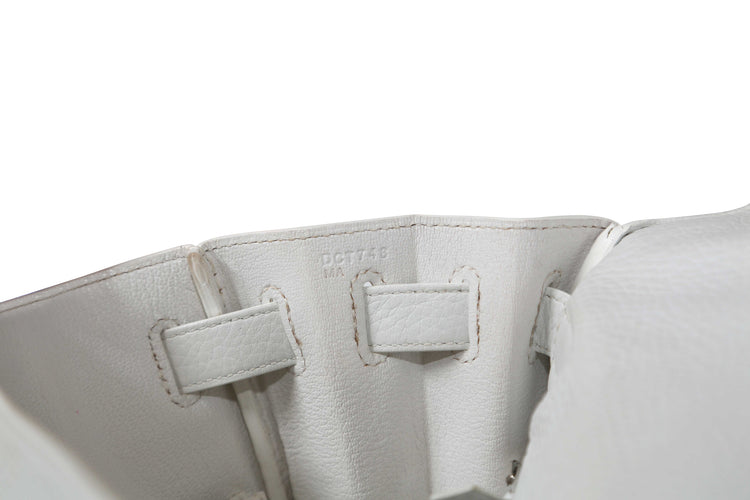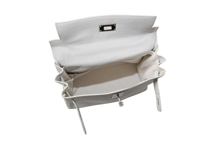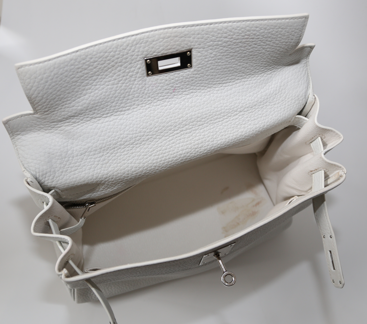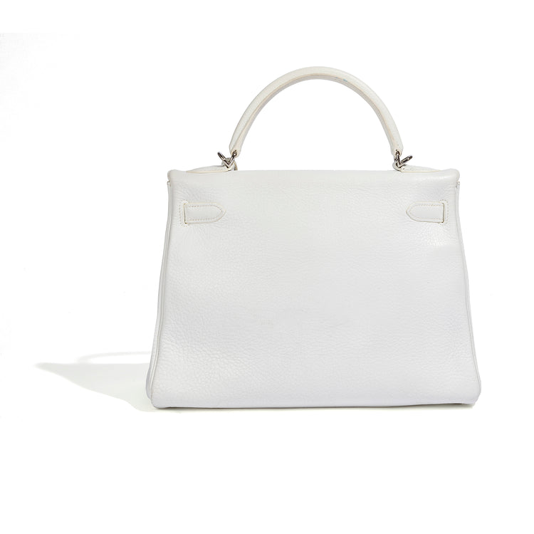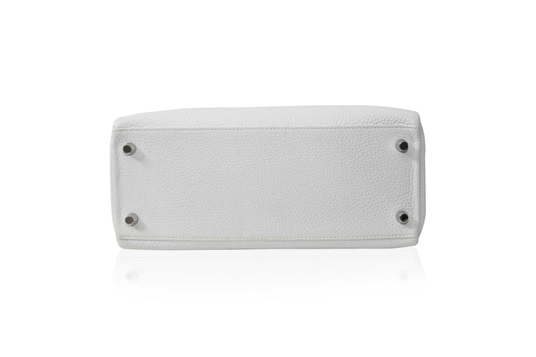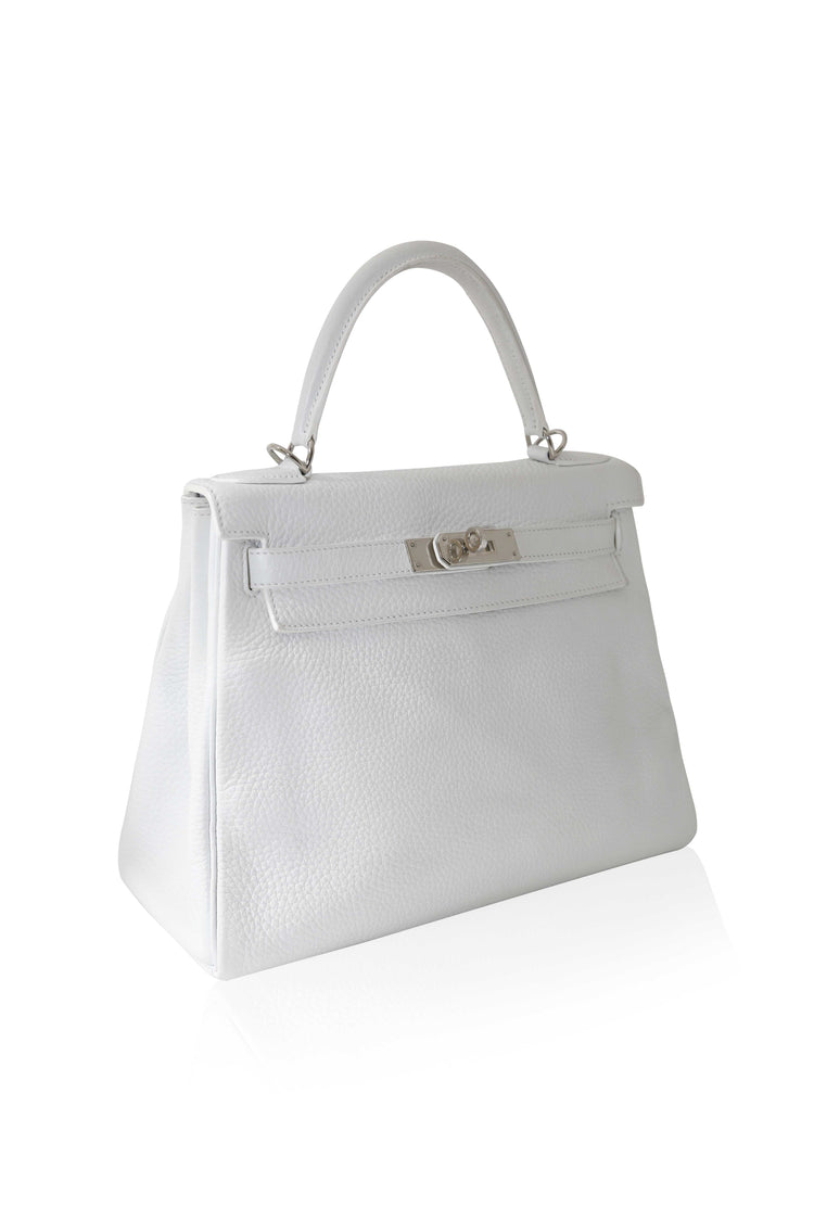 One of the most sought-after and highly coveted Hermès style, this pre-owned Kelly 28 is the perfect size to transition from day to evening. Expertly crafted from Togo leather - a favoured Hermès hide for its texture and durability against scuffing and scratching, this bag exudes timeless style. The sparkling palladium-plated hardware perfectly accentuates the white shade. A true testament to the quality of the house's craftsmanship, this Kelly bag features a turn-lock closure and a bag strap which allows the bag to be worn as a cross-body or can be carried by the single rolled handle for a more elegant look.