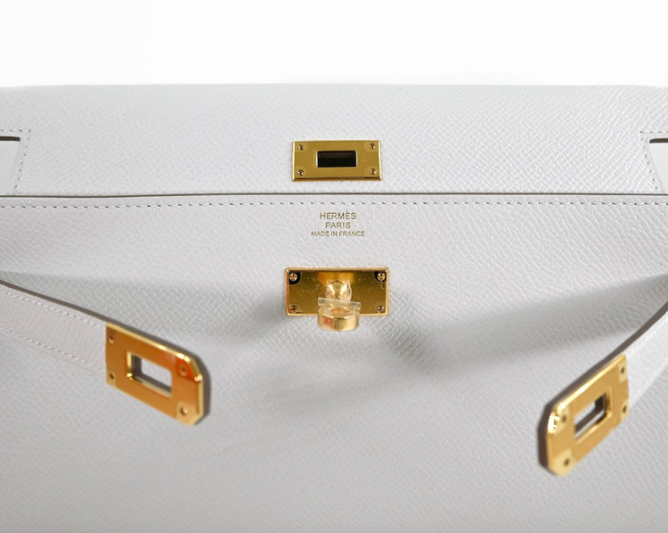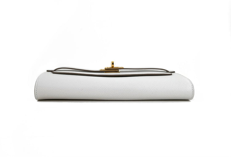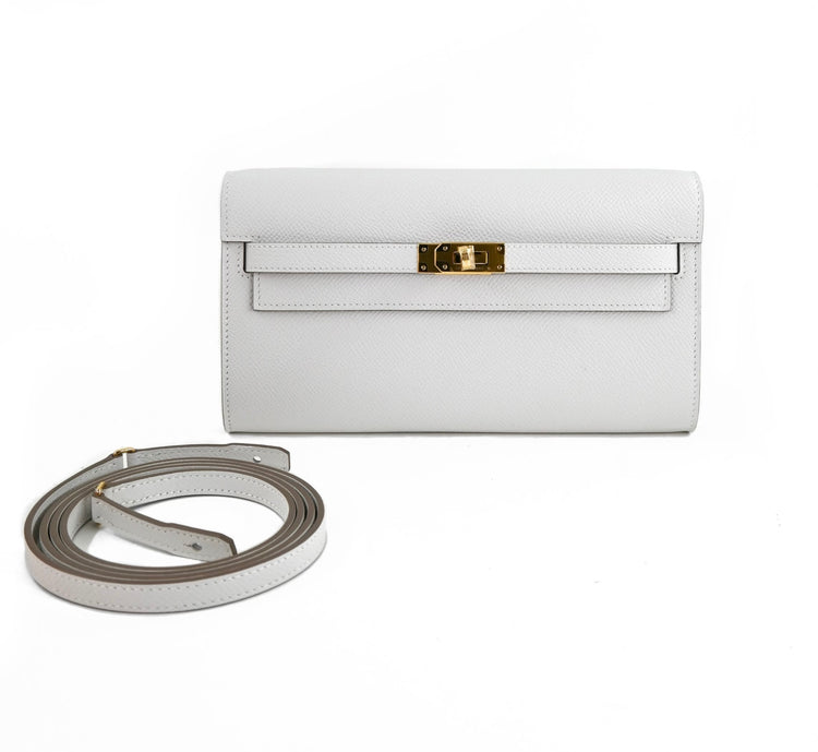 The Kelly Classic Wallet to Go from Hermès is a timeless and elegant addition to your collection. It comes with the iconic Hermès clasp and golden hardware, making it perfect to carry as a clutch at your next event or as a cross-body bag.