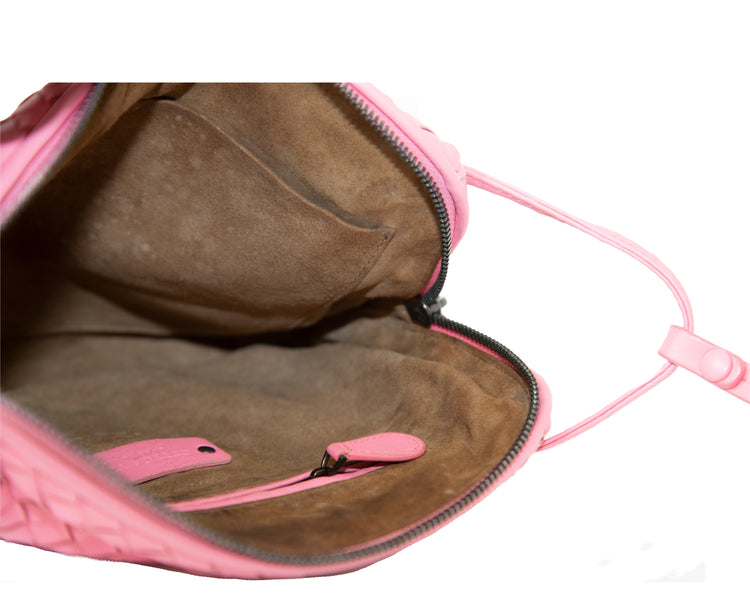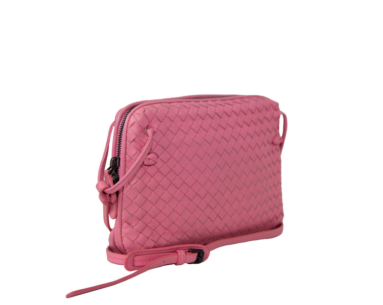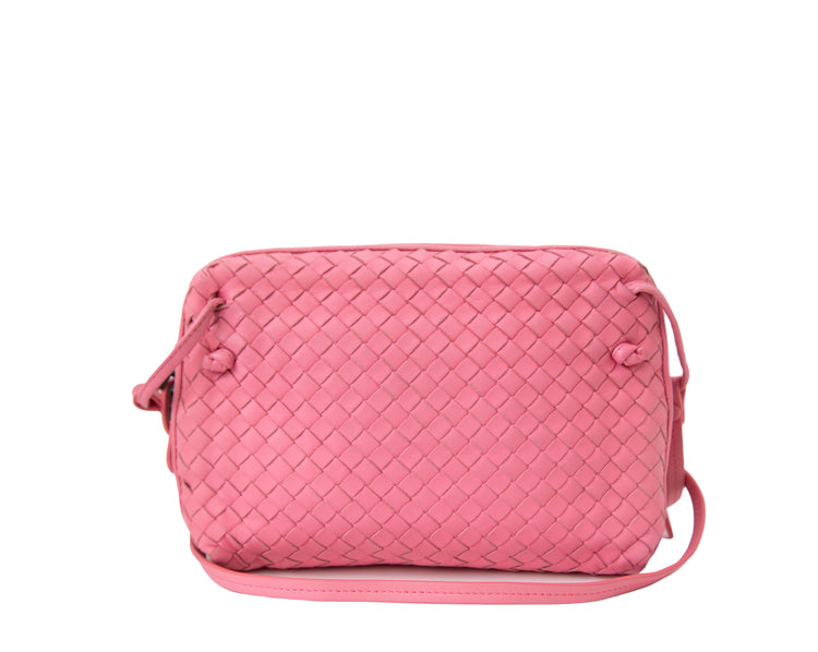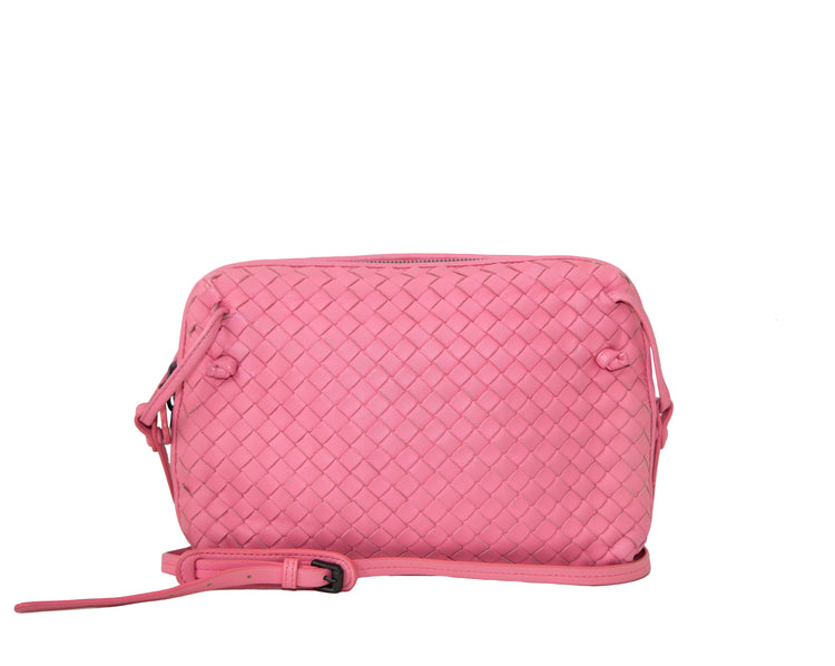 Introducing the Pink Nodini Leather Crossbody Bag. Made with the iconic intrecciato leather technique in a beautiful candy pink colour. Provides a stylish and spacious design perfect for everyday use. Constructed with premium materials for quality and durability.