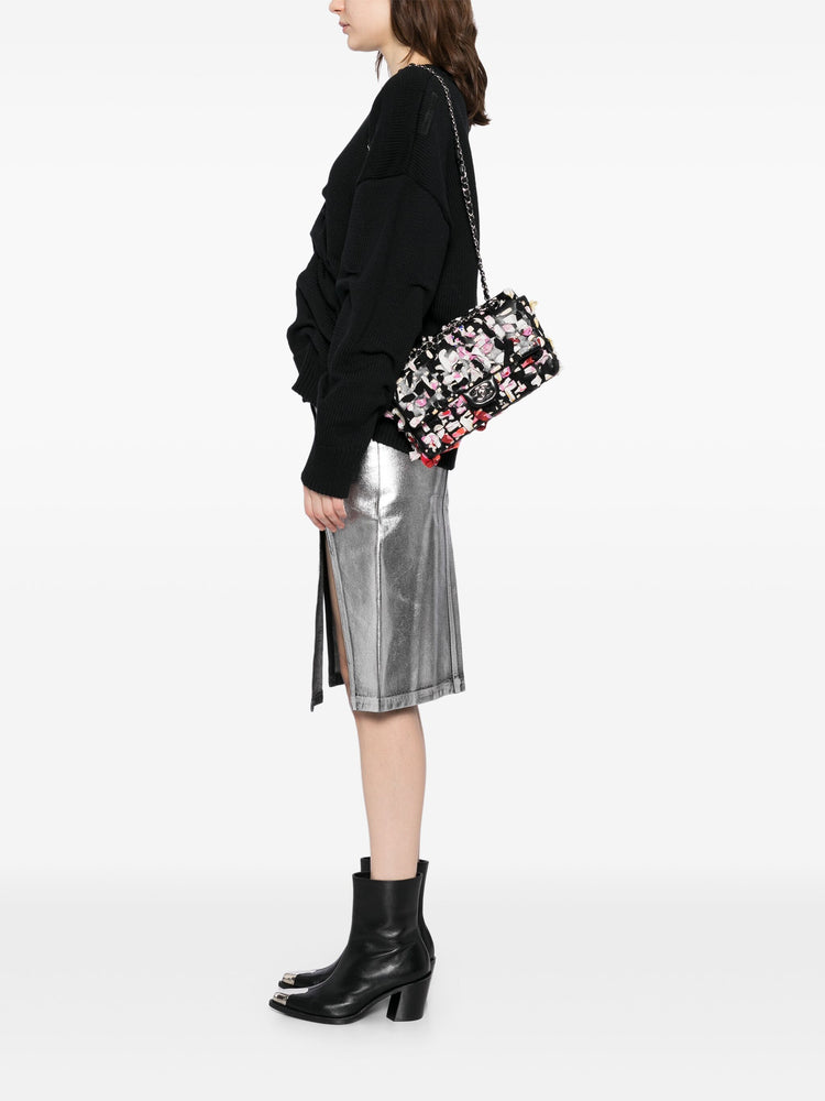 Elevate your style with the timeless elegance of the Silk Ribbon Classic Flap from Chanel. Crafted with luxurious silk ribbon in black and multi and leather, this iconic piece exudes sophistication and refinement. Elevate your wardrobe with this statement accessory.