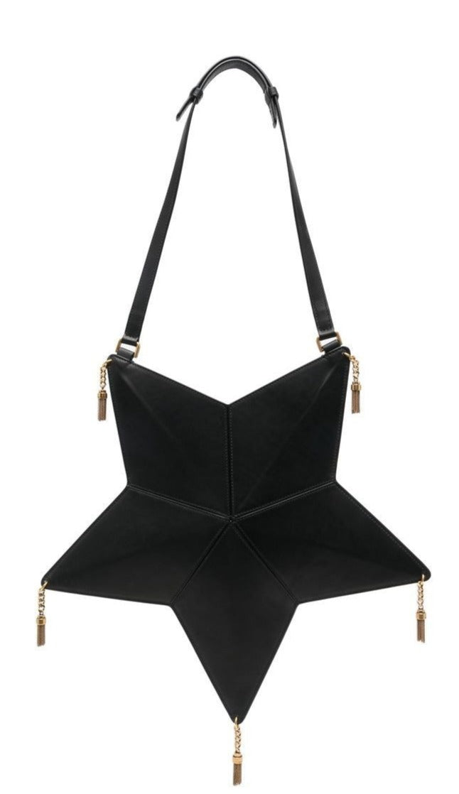 Expertly crafted from black calfskin leather and adorned with stunning gold-coloured details, the Saint Laurent Star leather handbag is the epitome of luxury and style. The metallic tassel details add a touch of opulence, while the single-band design allows for effortless carrying. With an open top and a spacious single compartment, this YSL bag is both functional and fashionable.