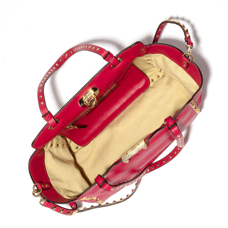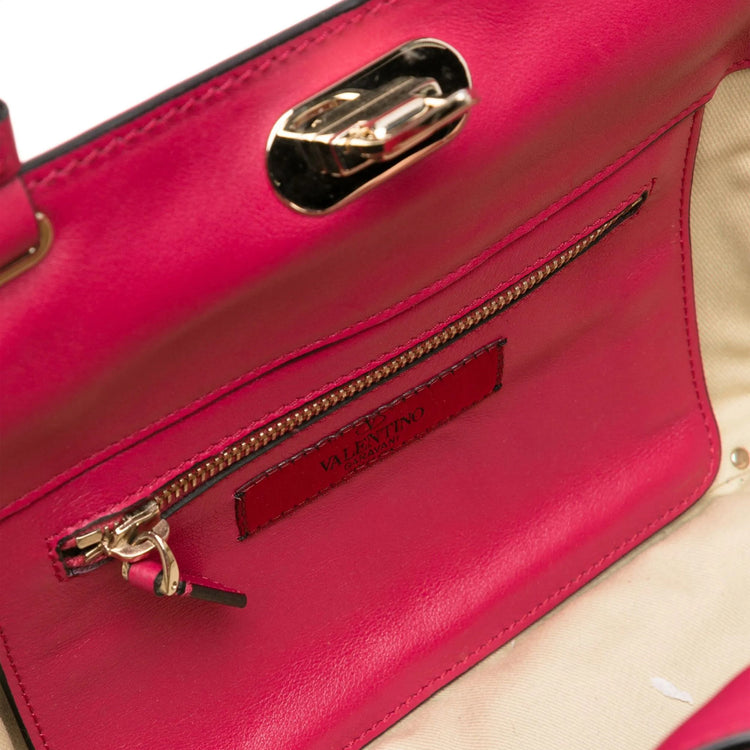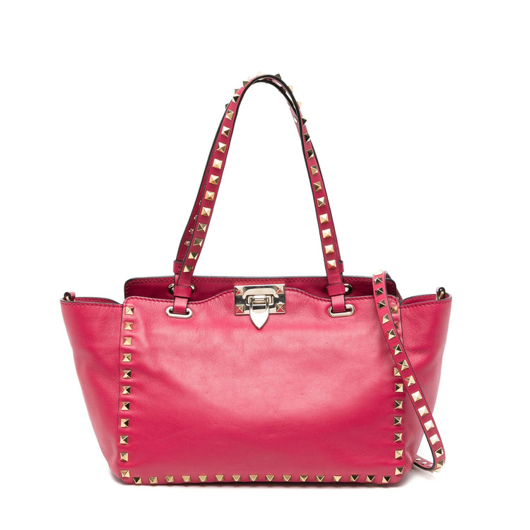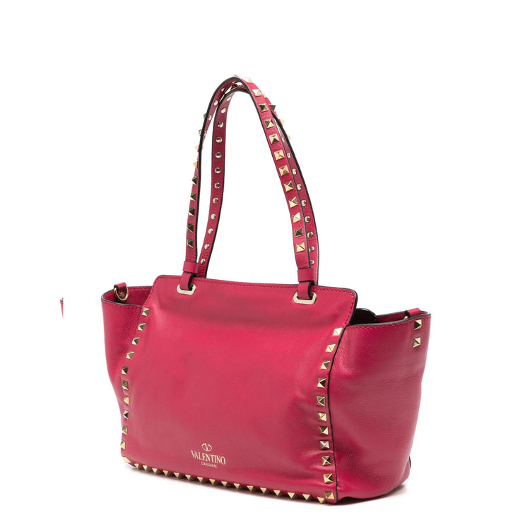 Expertly crafted by Valentino Garavani, the Pink Tote Rockstud Bag boasts ancient architectural-inspired Rockstud embellishments. With a medium size, tonal stitching, and hand-painted edges, this bag exudes timeless elegance and impeccable attention to detail. Elevate any look with this iconic must-have accessory.
