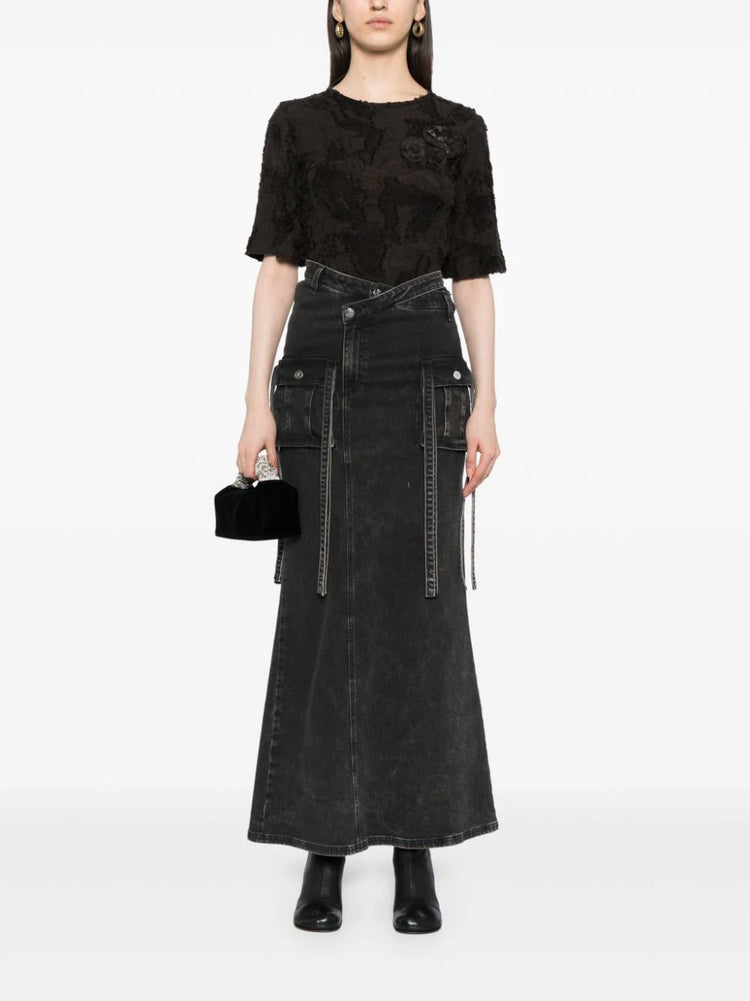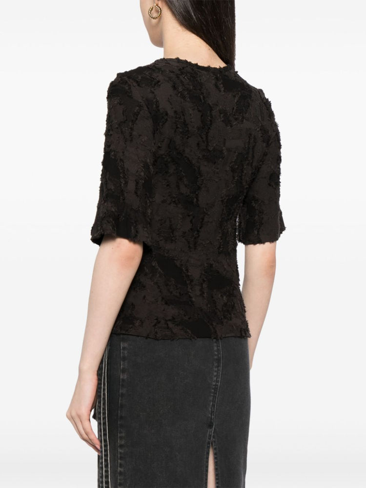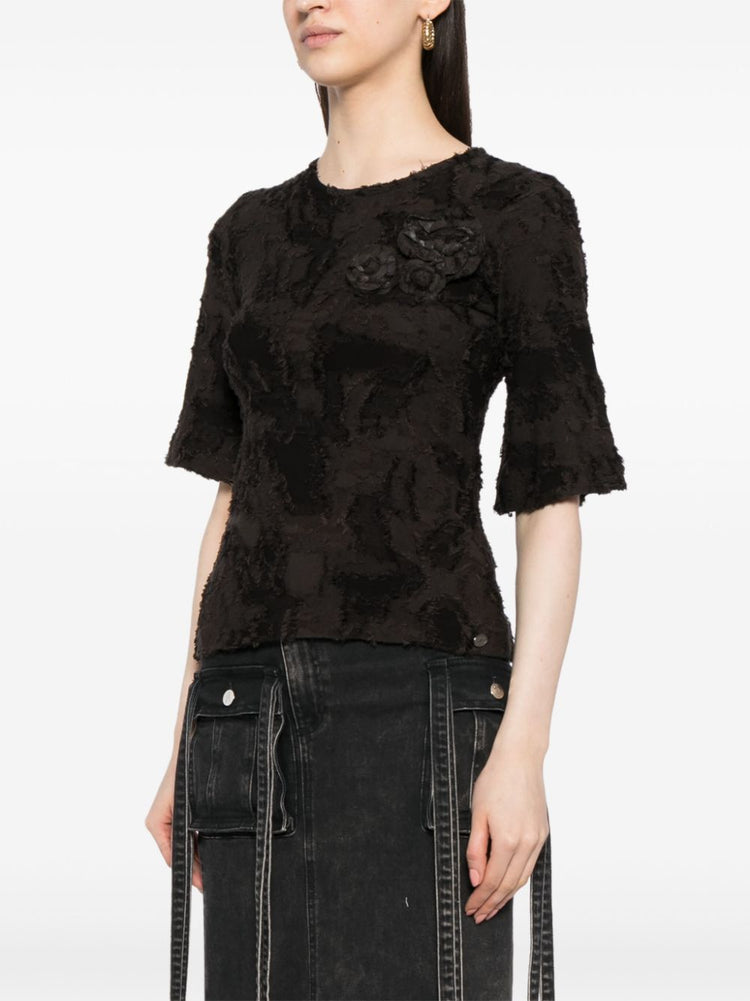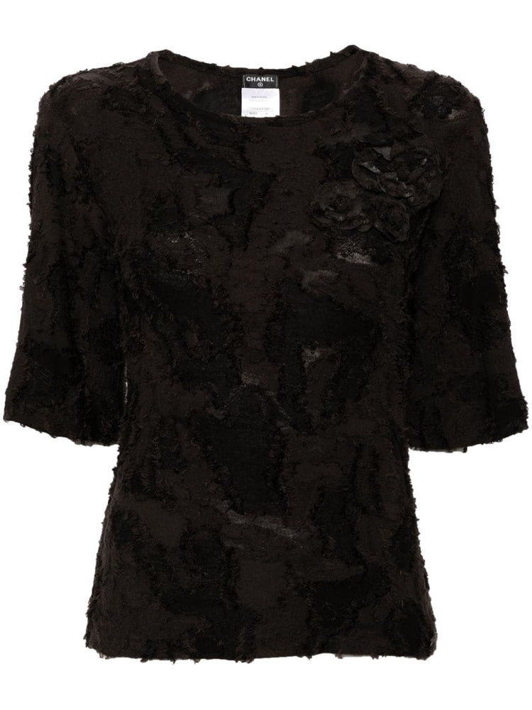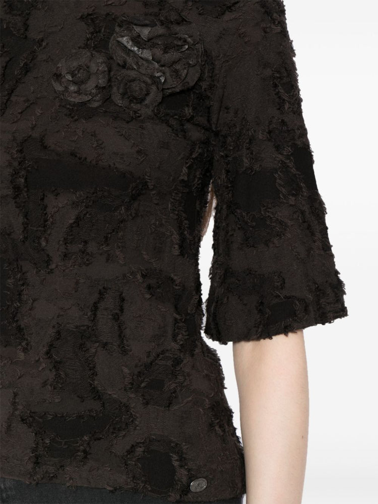 Expertly crafted in France from pure black cotton and viscose, this pre-owned black top from Chanel features 3 brooches, a crew-neck collar, and ripped detailing throughout.