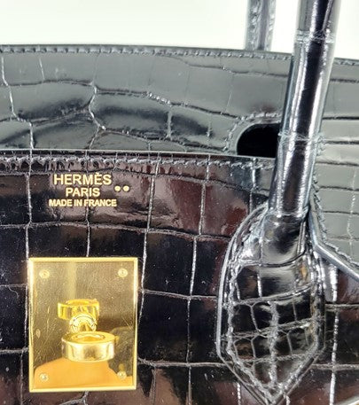This 30cm Black Shiny GHW Birkin bag is an exquisite work of art. Meticulously crafted in 2009 from rare exotic leather, it stands out with its classic black hue and luxurious gold hardware. Its extravagant rarity makes it a true showstopper.