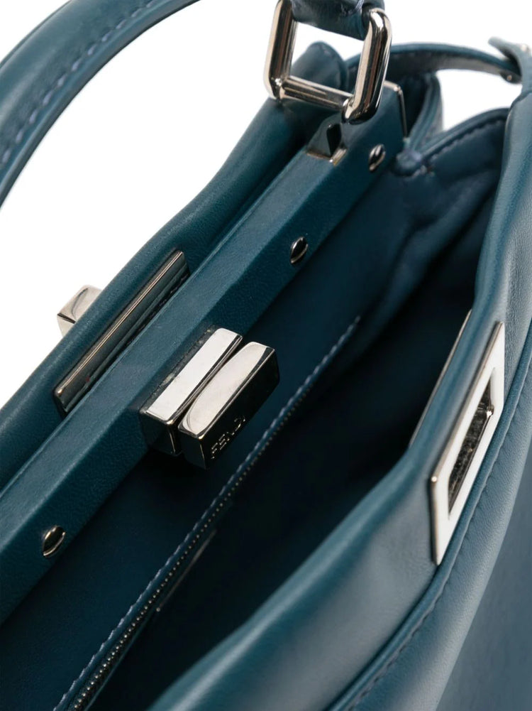 Achieve a chic look effortlessly with this small teal Fendi Peekaboo. Its sophisticated design will complement any outfit.