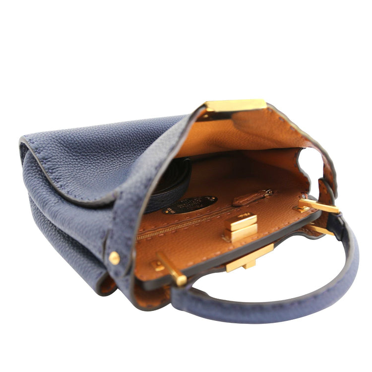 Indulge in a Fendi It-bag with this spectacular two-way piece. Crafted in a beautiful navy leather and accented in gold plated metal, this exquisite design features a rounded top handle, side snap fastening, a twist lock closure and elegant purse feet. Offset with gold-tone fastenings, the bag opens to reveal a spacious main internal compartment and displays an internal logo plaque and zipped interior compartment for all your daily essentials.