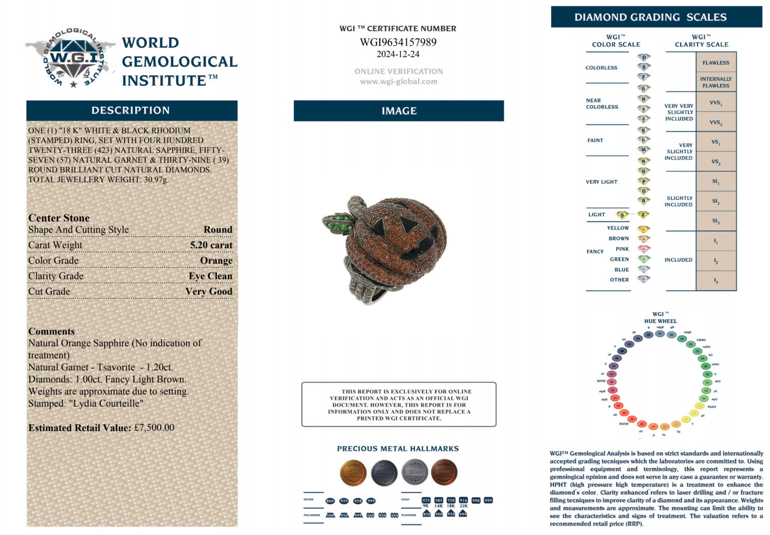 18kt White Gold / Orange Sapphire / Green Garnet / Diamonds / Black Rhodium.
