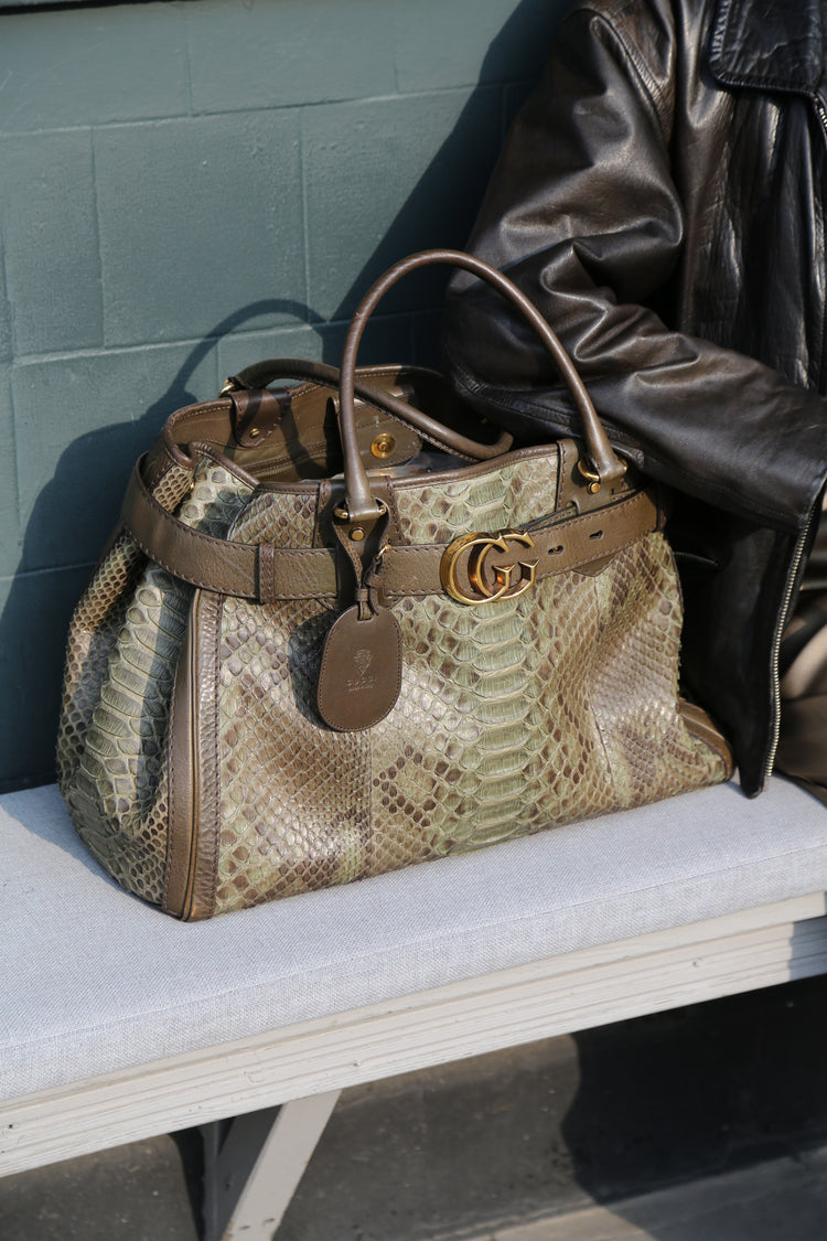The GG Running Python Handbag, expertly crafted by Gucci, offers a luxurious and unique accessory to elevate any outfit. Designed with exotic leather, this handbag boasts a distinctive appearance. While the markings on the inside may differ, and there may be slight discolouration on the corners, each piece is a one-of-a-kind masterpiece. Please refer to the images for further details.