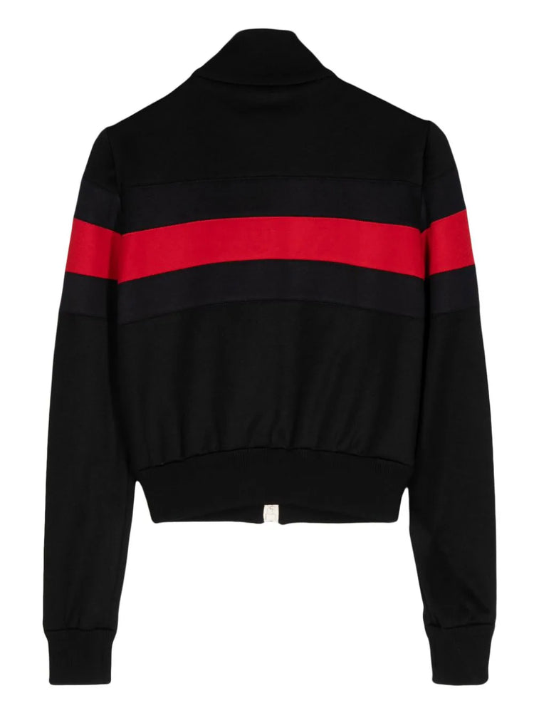 Expertly crafted with a Gucci sweater jersey fabric and adorned with sparkling rhinestones, this Crystal Embellished Jersey Jacket elevates any outfit with an extra touch of glamour. Perfect for adding a luxurious touch to any ensemble.
