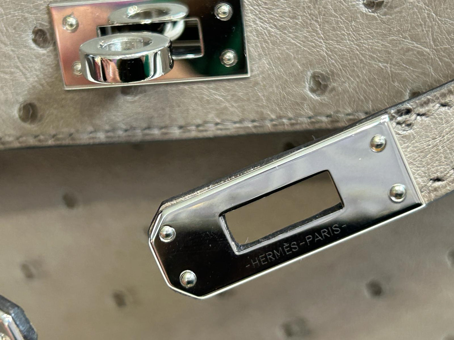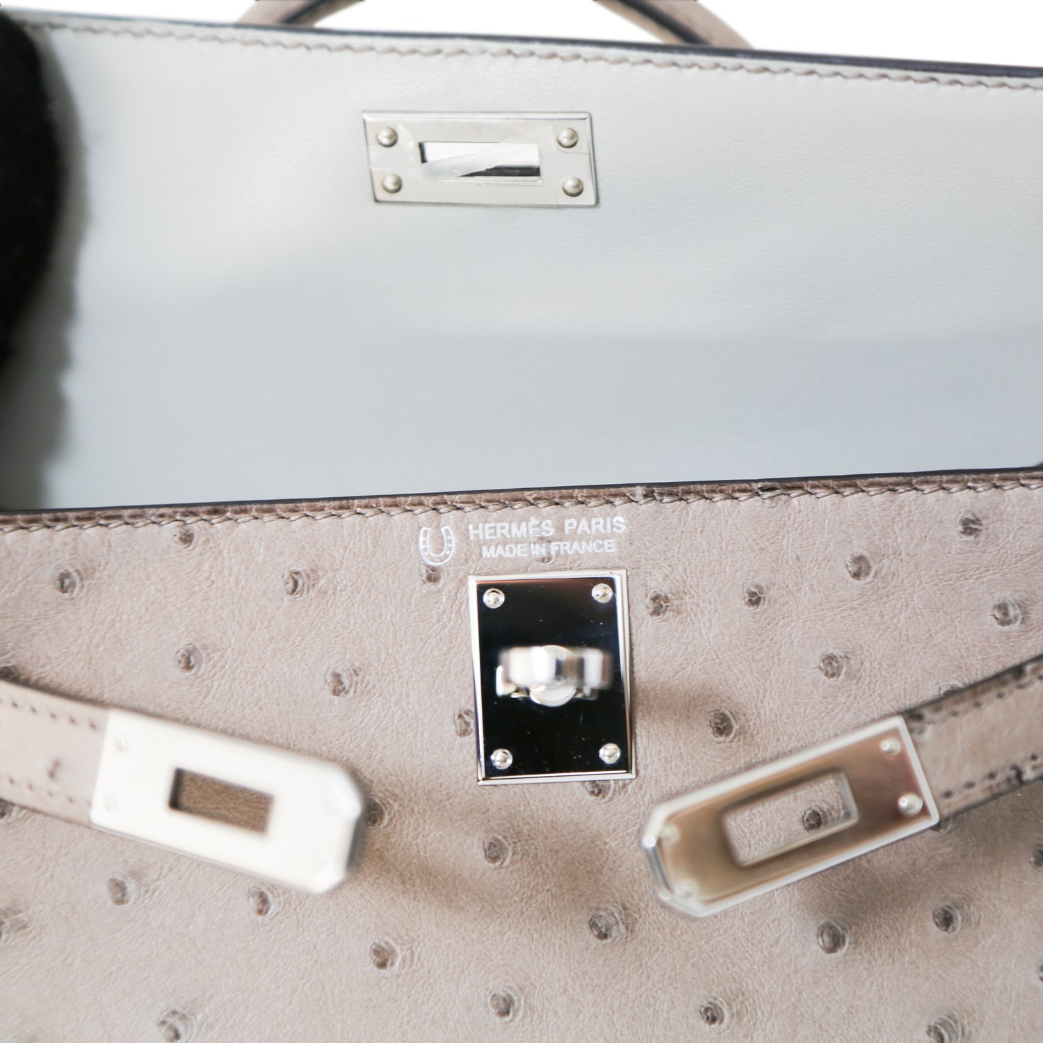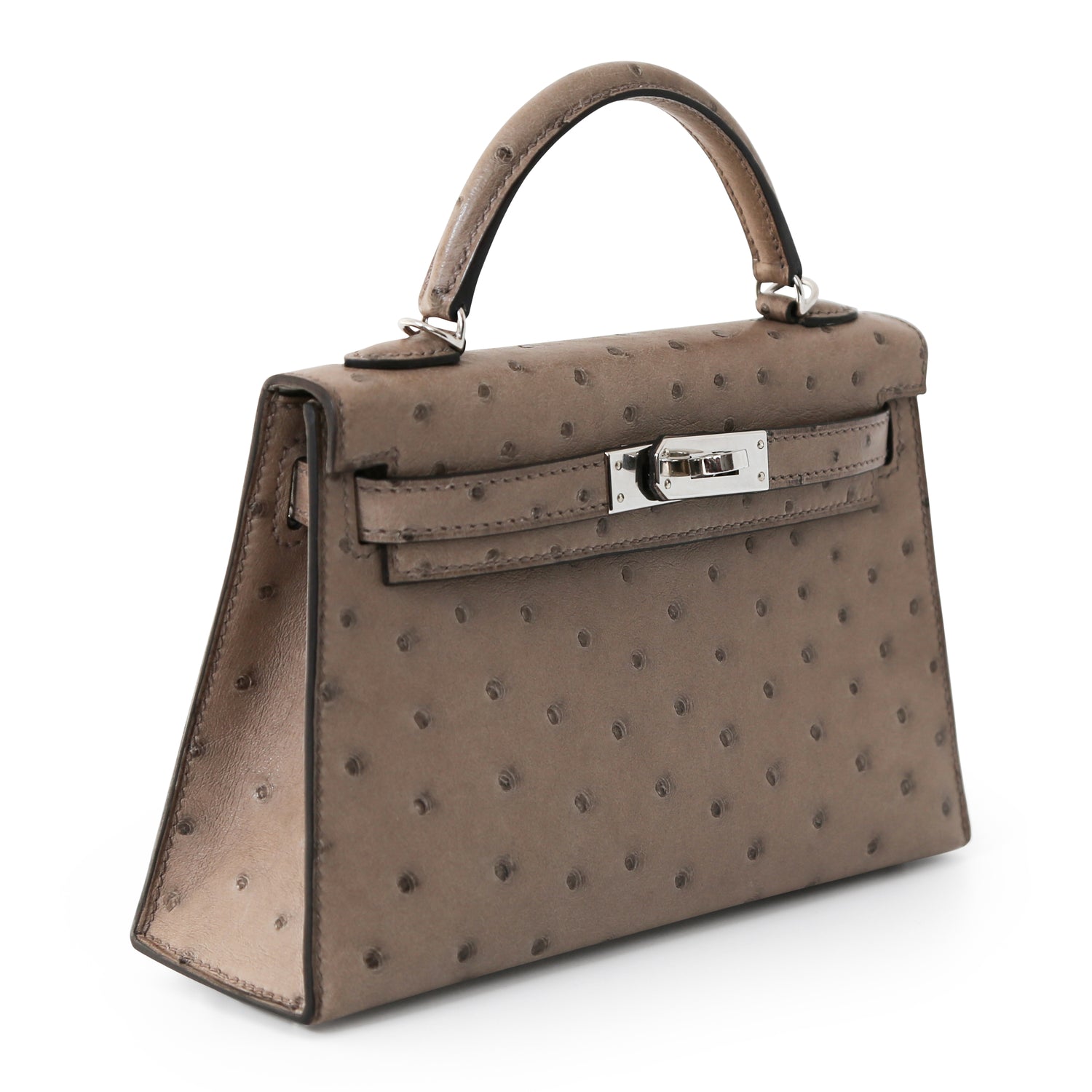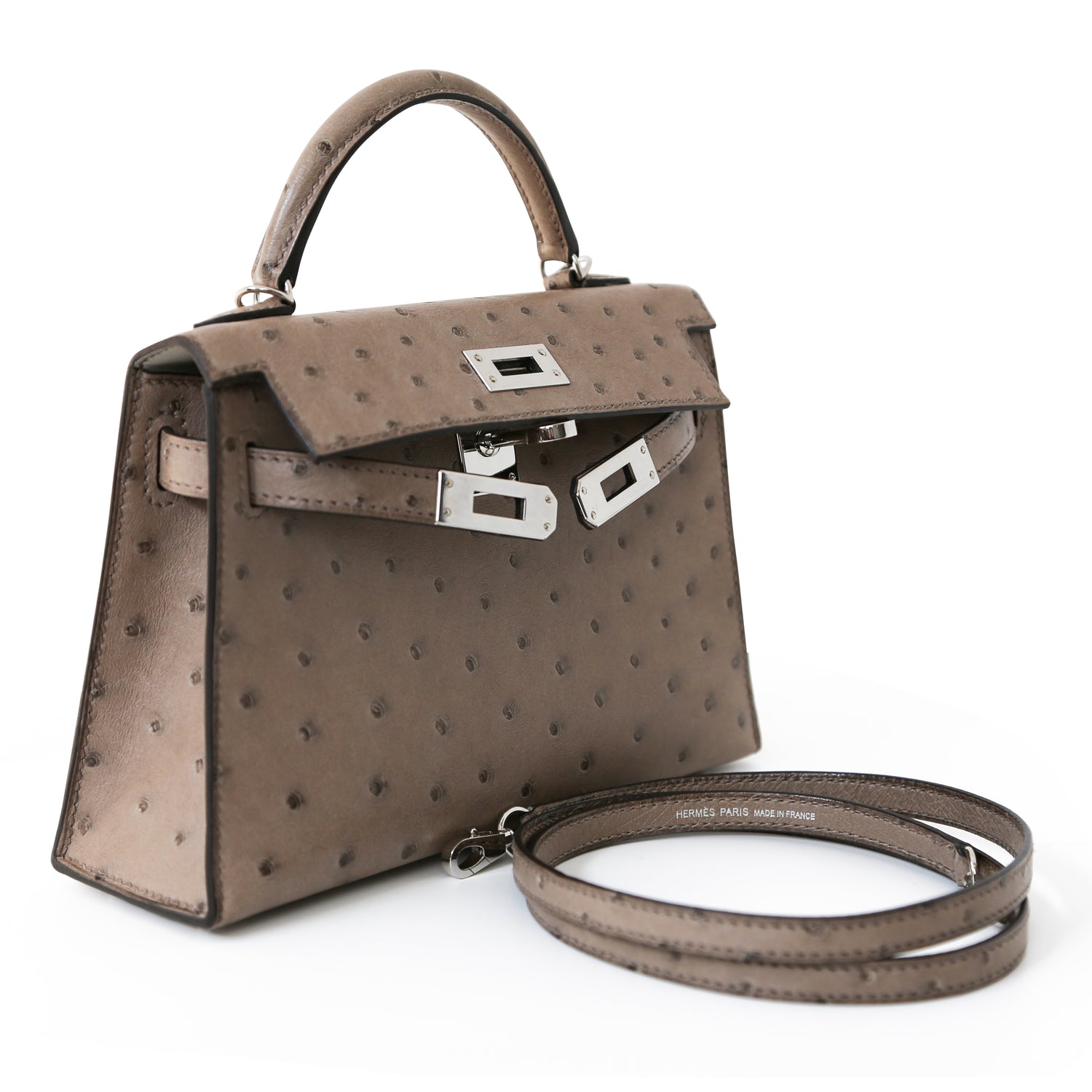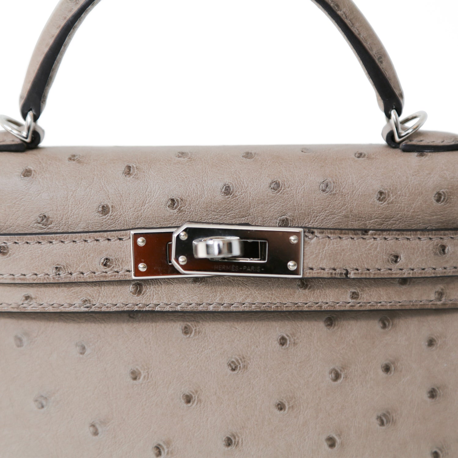 - Attach the removable shoulder strap or carry it in your hand using the small top handle. The special grey hue of this Hermes mini Kelly will make it the focal point of any outfit.