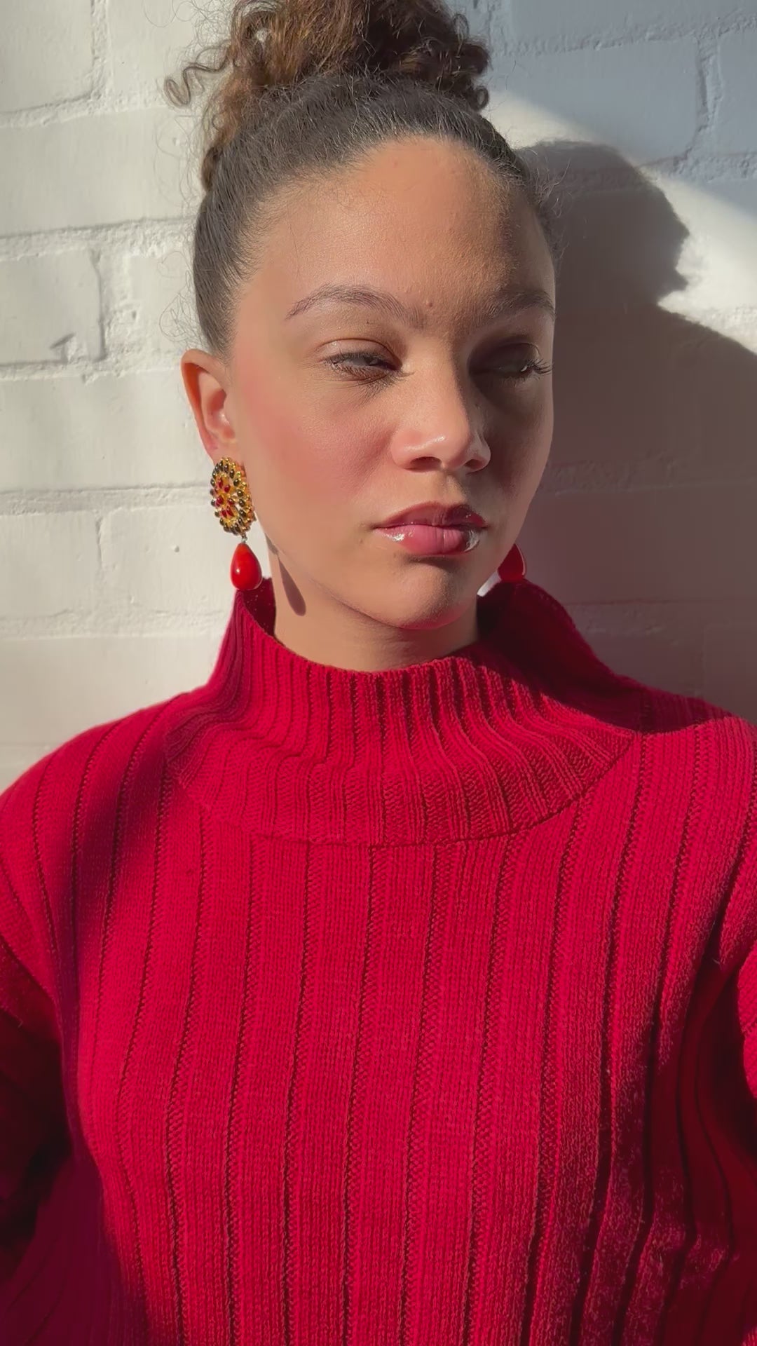 These vintage gripoix earrings from Chanel were meticulously crafted in France from yellow-gold-plated metal, coral, purple and amber-coloured glass beads for a statement-making set. The coral drop provides a minimal yet unique detail to an elegant piece. Classic and sophisticated, these versatile earrings close with a simple clip-on back and makes an awe-inspiring addition to any designer jewellery collection.