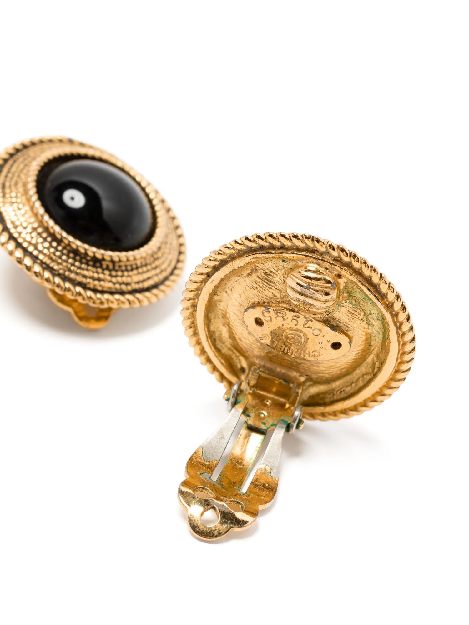 These pre-loved earrings are in good condition with minimal signs of use. This may include fading of material or plating and scratches. Faded gold plate on the clip fastenings. Some visible wear on the inner part of the earrings, consistent with age and fading of material.