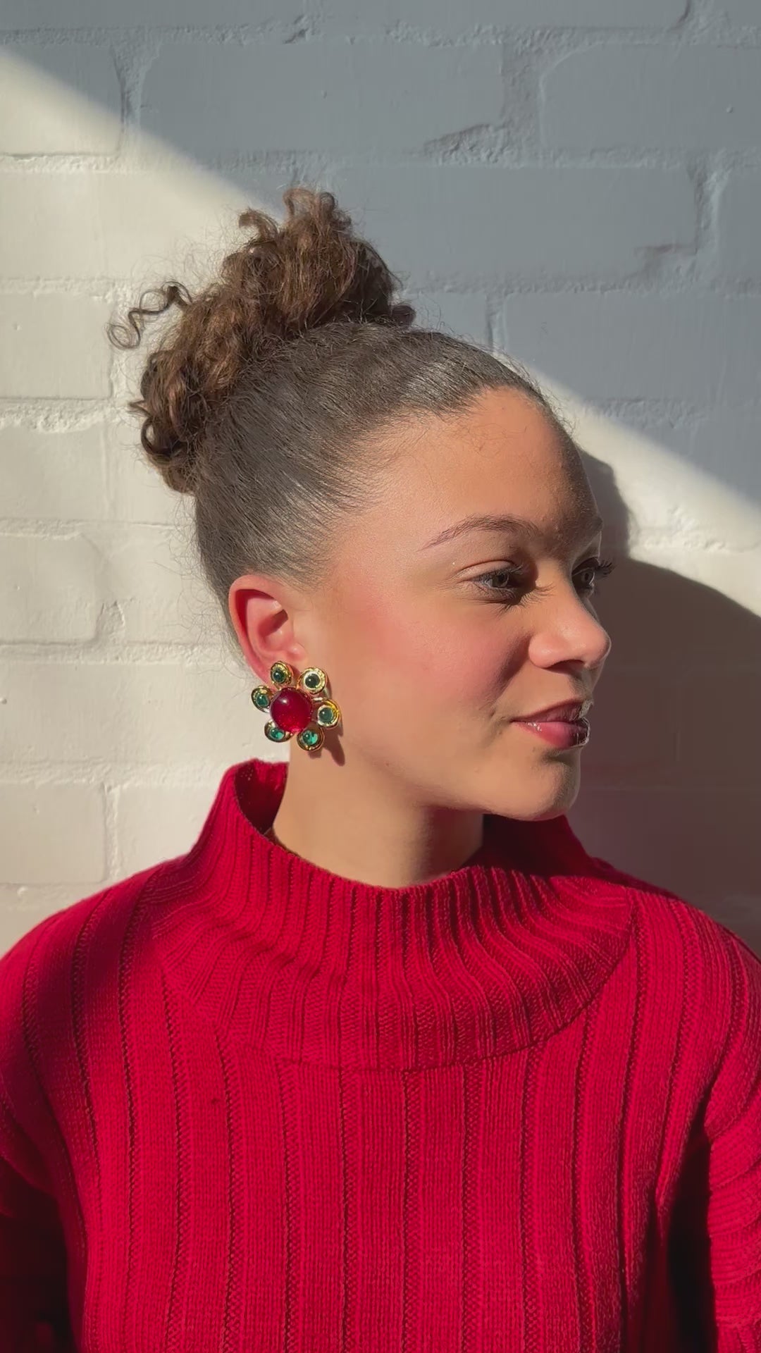 Working alongside Paris' famed jeweller specialising in glass beading, Gripoix Paris, Chanel presents these gold-plated clip-on earrings. Constructed in a delicate floral-shaped silhouette, the pair are adorned with aqua blue and red-toned glass beads for a vibrant finish.